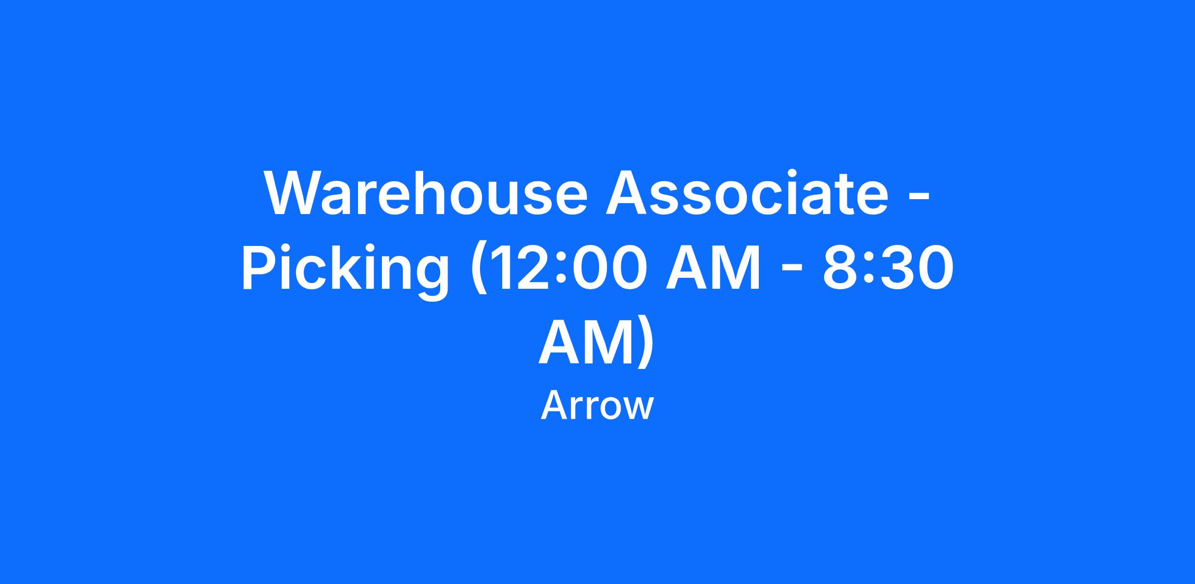 Warehouse Associate - Picking (12:00 AM - 8:30 AM)