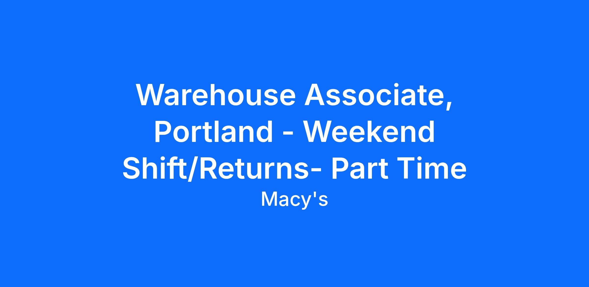 Warehouse Associate, Portland - Weekend Shift/Returns- Part Time