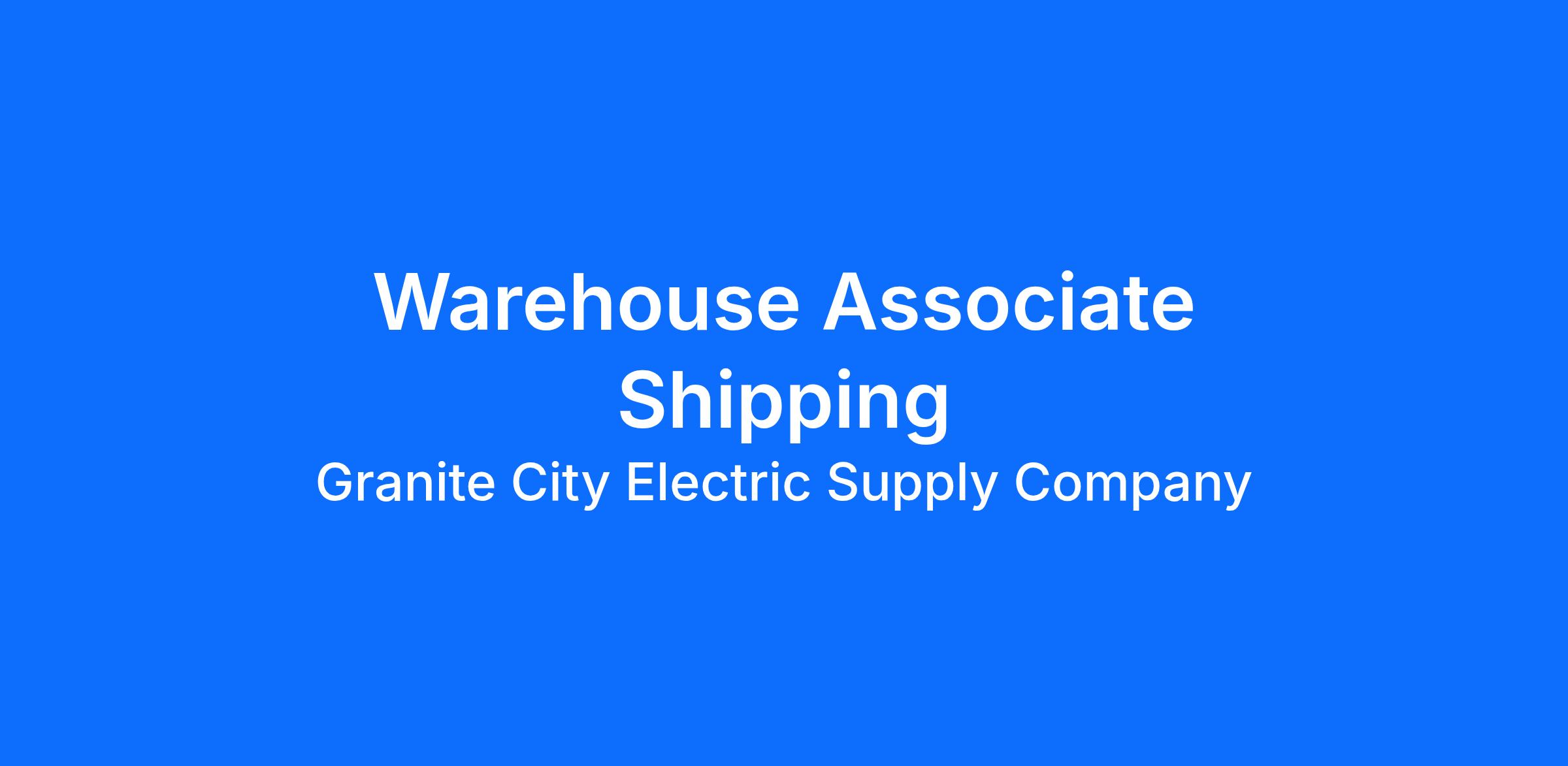 Granite City Electric is looking to hire a full-time Warehouse Shipping Associate for our Methuen, MA location. The hours for this position will be 12:00PM-8:30PM, Monday through Friday. The Warehouse Shipping Associate will be responsible for inventory management, receiving, storing, picking, and shipment of materials. Pay for this position is $21.00-$23.00 per hour, based on experience. Additional details are listed below.
