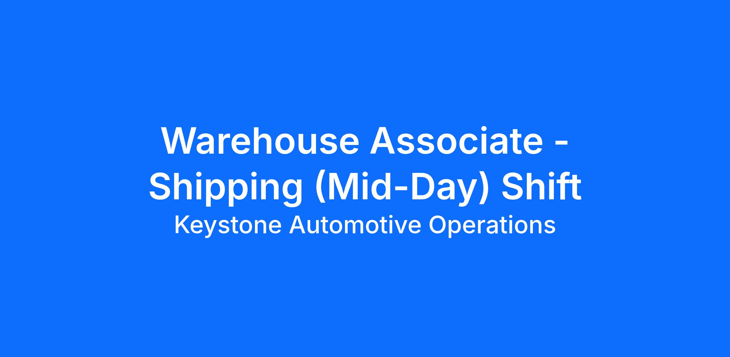 Warehouse Associate - Shipping (Mid-Day) Shift