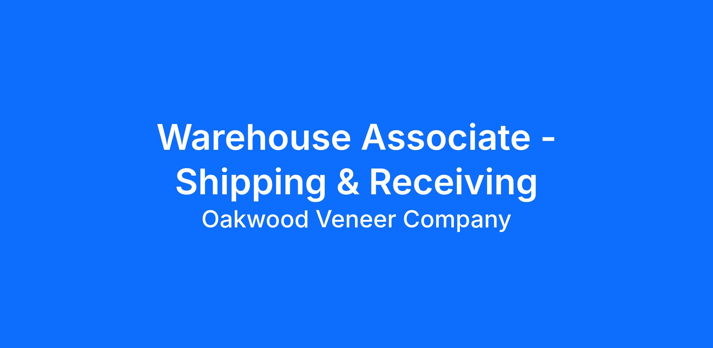Are you dependable, detail-oriented, and comfortable working in a fast-paced warehouse environment? Do you enjoy hands-on work and being part of a team that values quality and communication? Oakwood Veneer Company is hiring a Shipping & Receiving / Warehouse Associate for our Troy, Michigan facility.