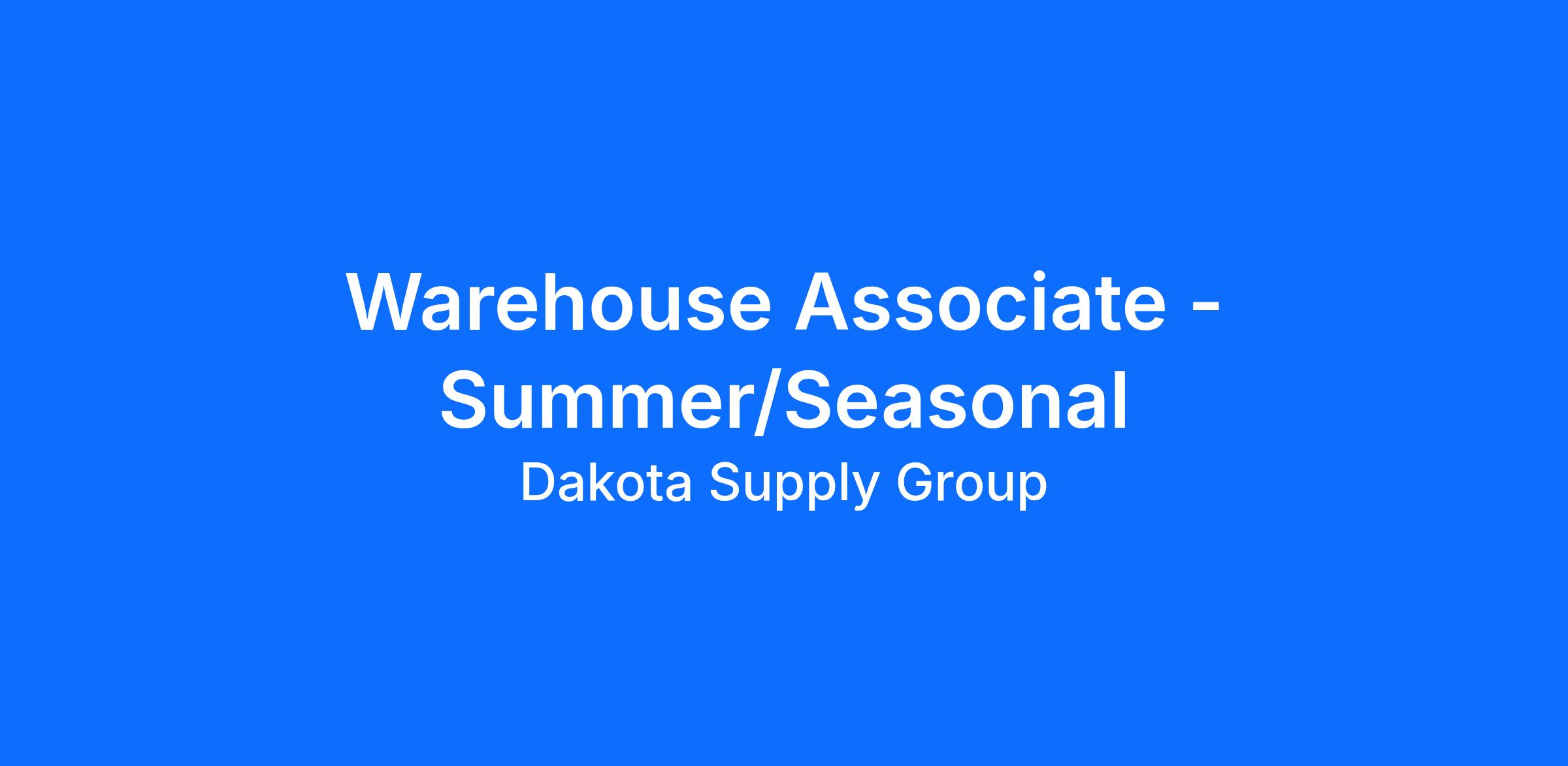 DSG is seeking a Seasonal Warehouse Associate in our Sioux Falls, SD Waterworks location. In this temporary, hourly position, work is typically performed during standard business hours, Monday through Friday, between May and August 2026, but may vary on occasion according to business needs. As a Warehouse Associate, you will be responsible for all aspects of warehouse operations, including but not limited to: order pulling, shipping & receiving, putting product away, handling and preparing product for shipment, and maintaining a safe, clean and orderly work environment.