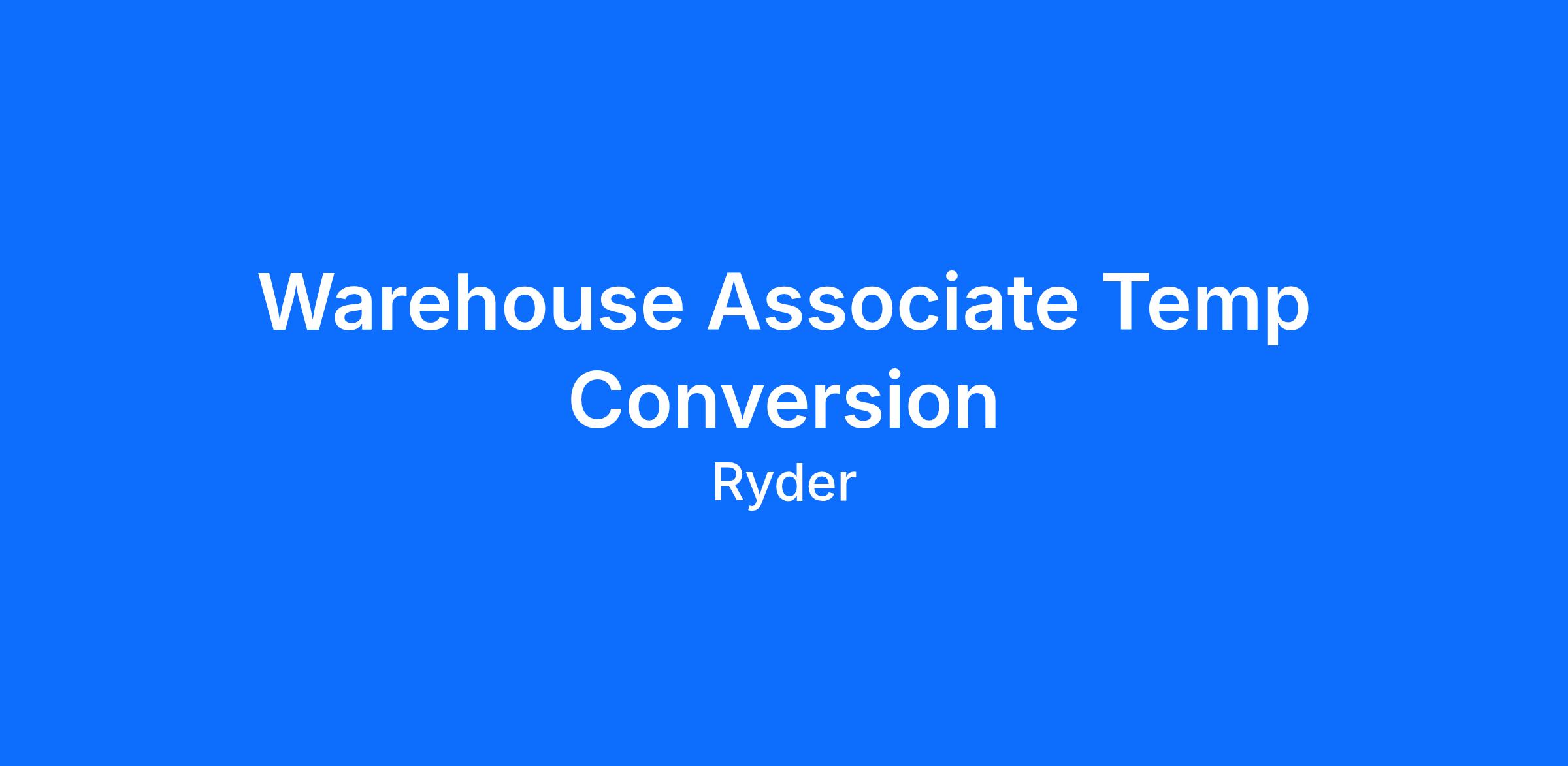 We want the right Warehouse Associate to join us at Ryder and work in the Safest Supply Chain Environment with State of the Art Equipment