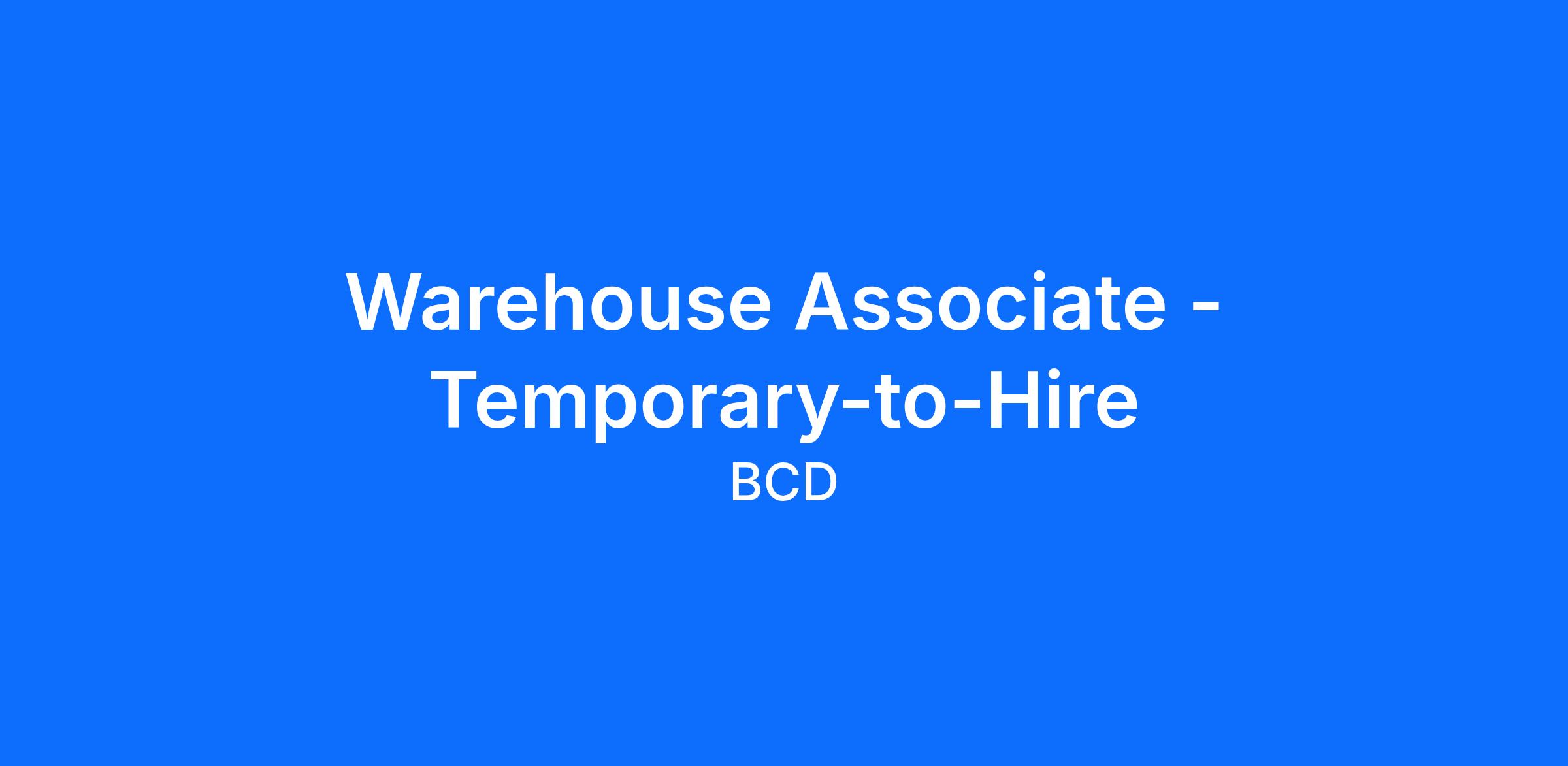 Job Title: Warehouse Associate - Temporary-to-Hire