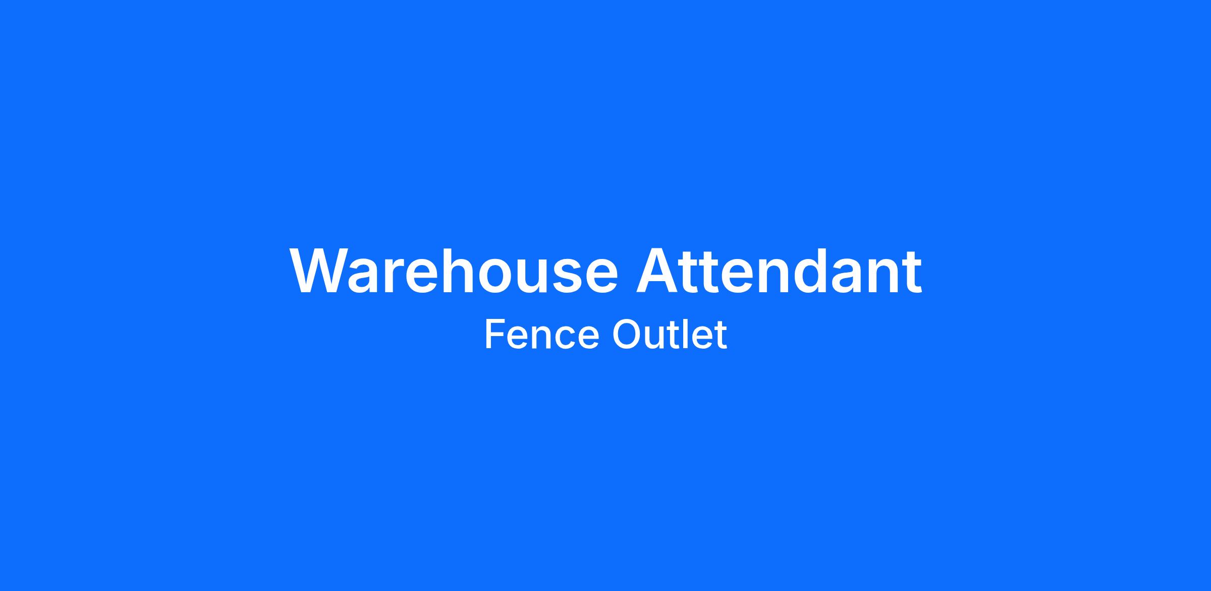 Fence Outlet is in need of a Warehouse Attendant for our store locations.