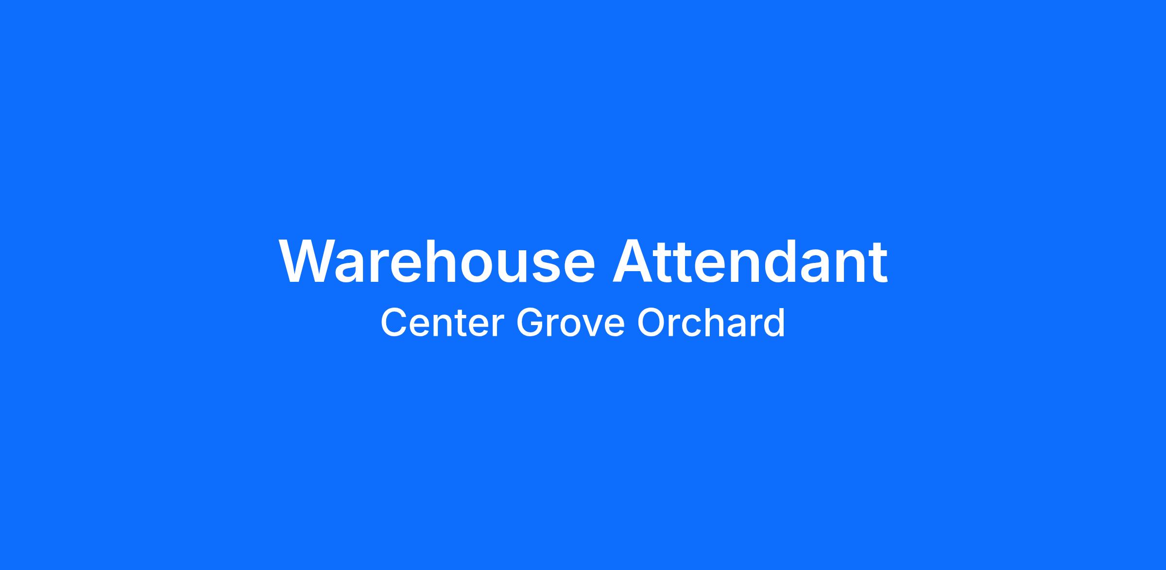 As a Warehouse Attendant at Center Grove Orchard, you’ll play a key role in delivering food and supplies to various locations across the farm. This position requires strong leadership skills to coordinate and guide others, ensuring smooth and timely deliveries to keep the farm running seamlessly. If you’re organized, reliable, and ready to support our team in a dynamic environment, this role is for you!