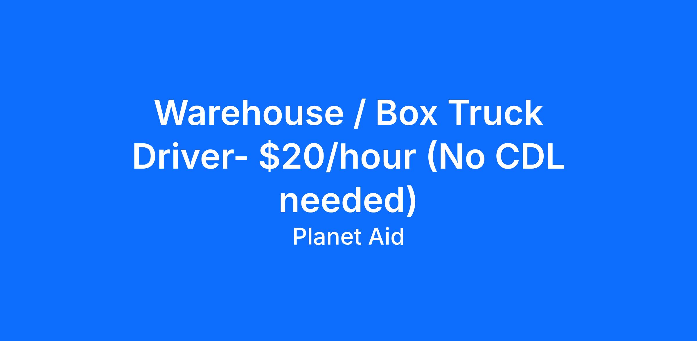 The transportation responsibility of driving trucks of multiple sizes up to 20-foot box trucks and transporting material from host locations to Planet Aid Business Unit; the driver will service the sites and routes provided by Planet Aid. The employee will be responsible for collecting all bagged and loose clothes\shoes in and around the bins. The driver will also be responsible for the proper maintenance of the sites which includes cleaning and collecting all and disposing of any unusable items in and around the bins.