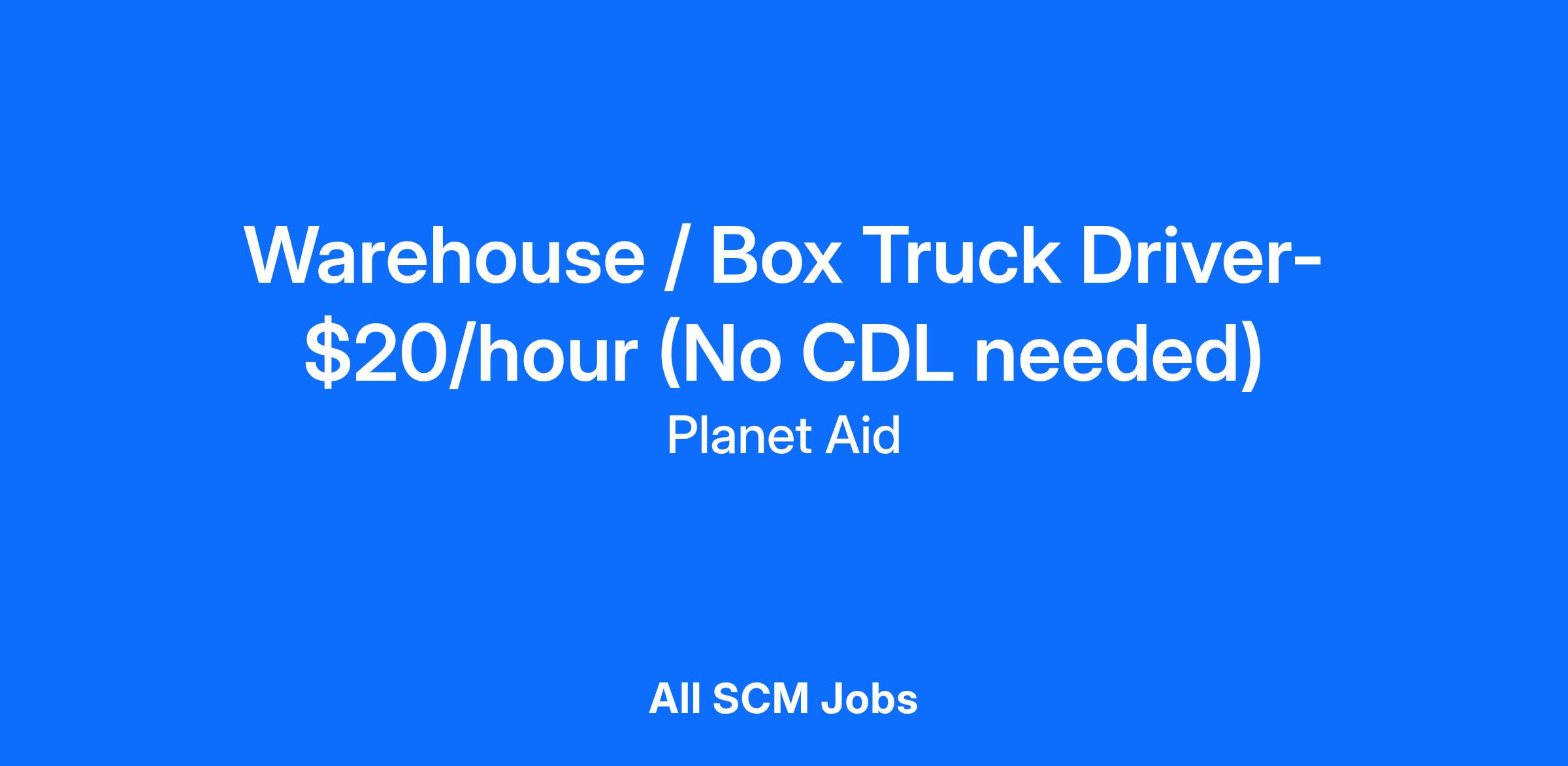 The transportation responsibility of driving trucks of multiple sizes up to 20-foot box trucks and transporting material from host locations to Planet Aid Business Unit; the driver will service the sites and routes provided by Planet Aid. The employee will be responsible for collecting all bagged and loose clothes\shoes in and around the bins. The driver will also be responsible for the proper maintenance of the sites which includes cleaning and collecting all and disposing of any unusable items in and around the bins.