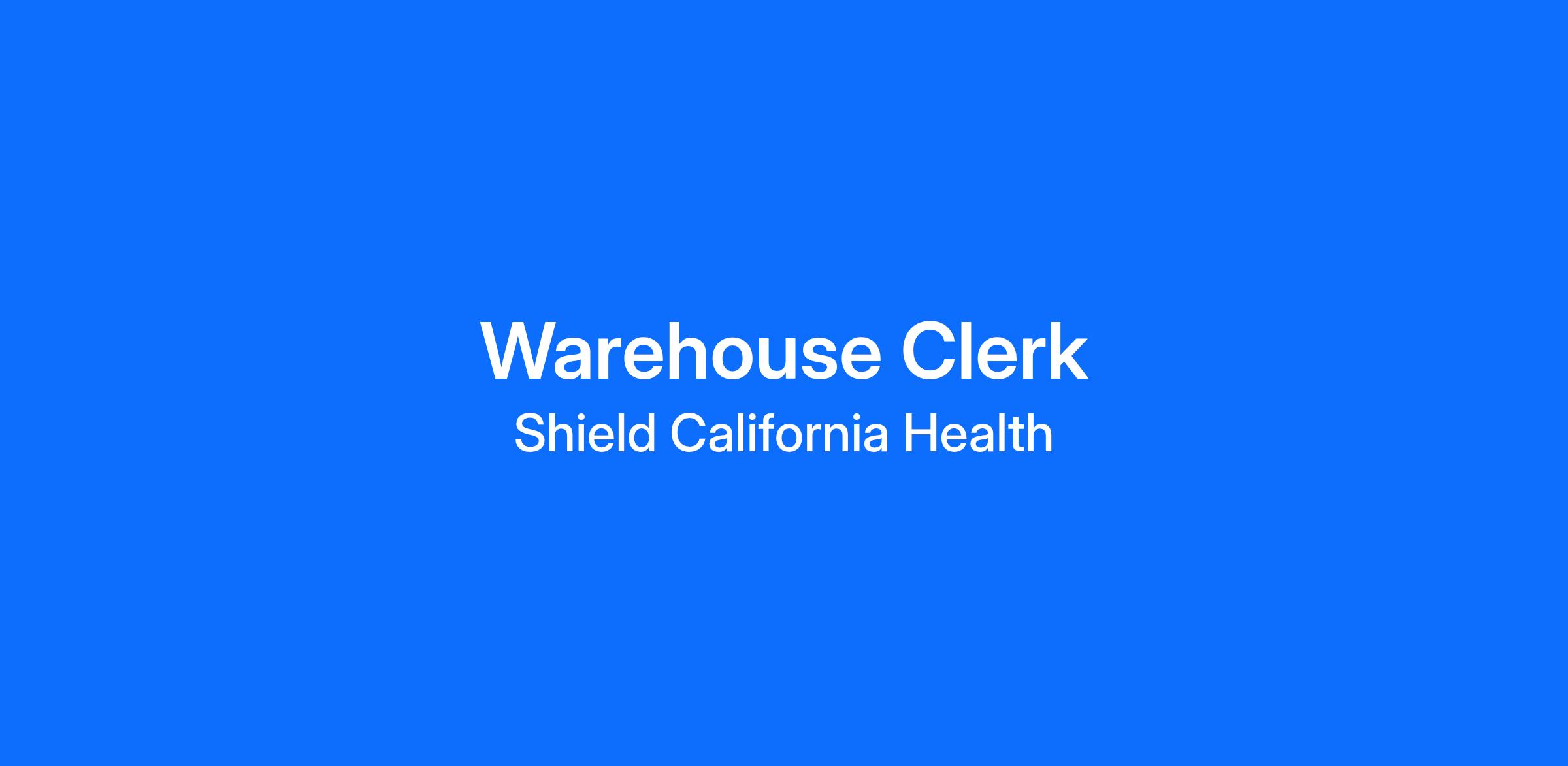Shield HealthCare is looking for a full-time Warehouse Clerk to join our Logistics Team in our Valencia, CA corporate office.