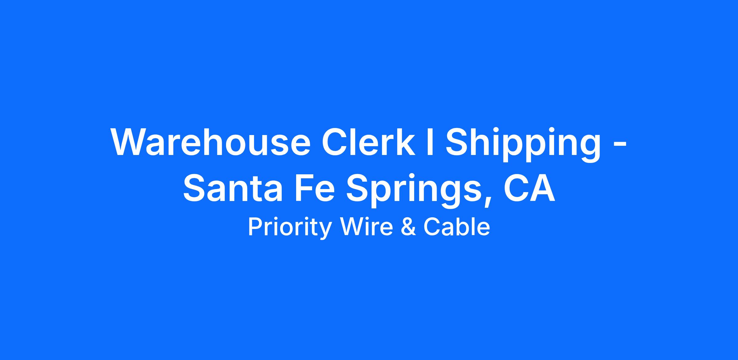 Warehouse Clerk I Shipping - Santa Fe Springs, CA