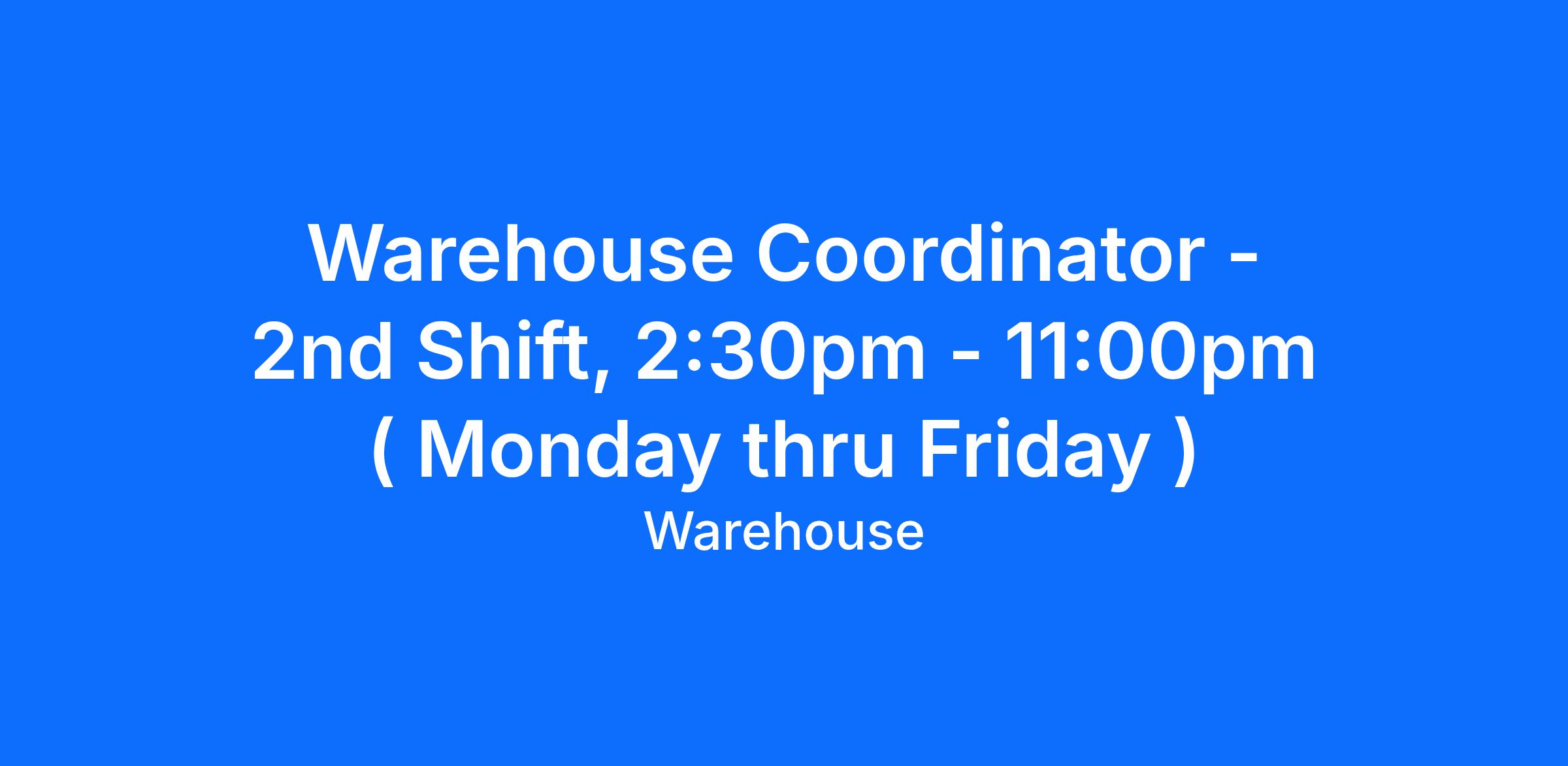 Job Title: Warehouse Coordinator