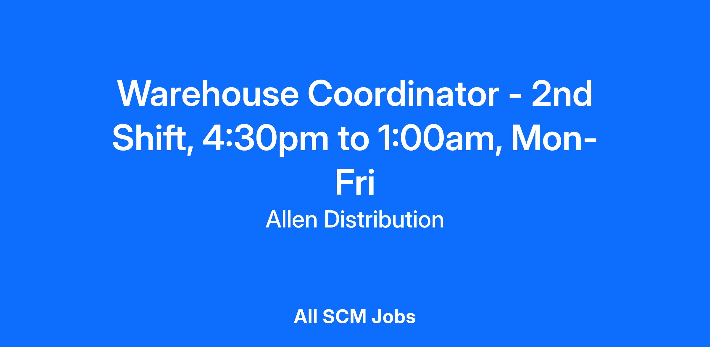 Schedule: 2nd Shift, 4:30pm to 1am, Mon-Fri