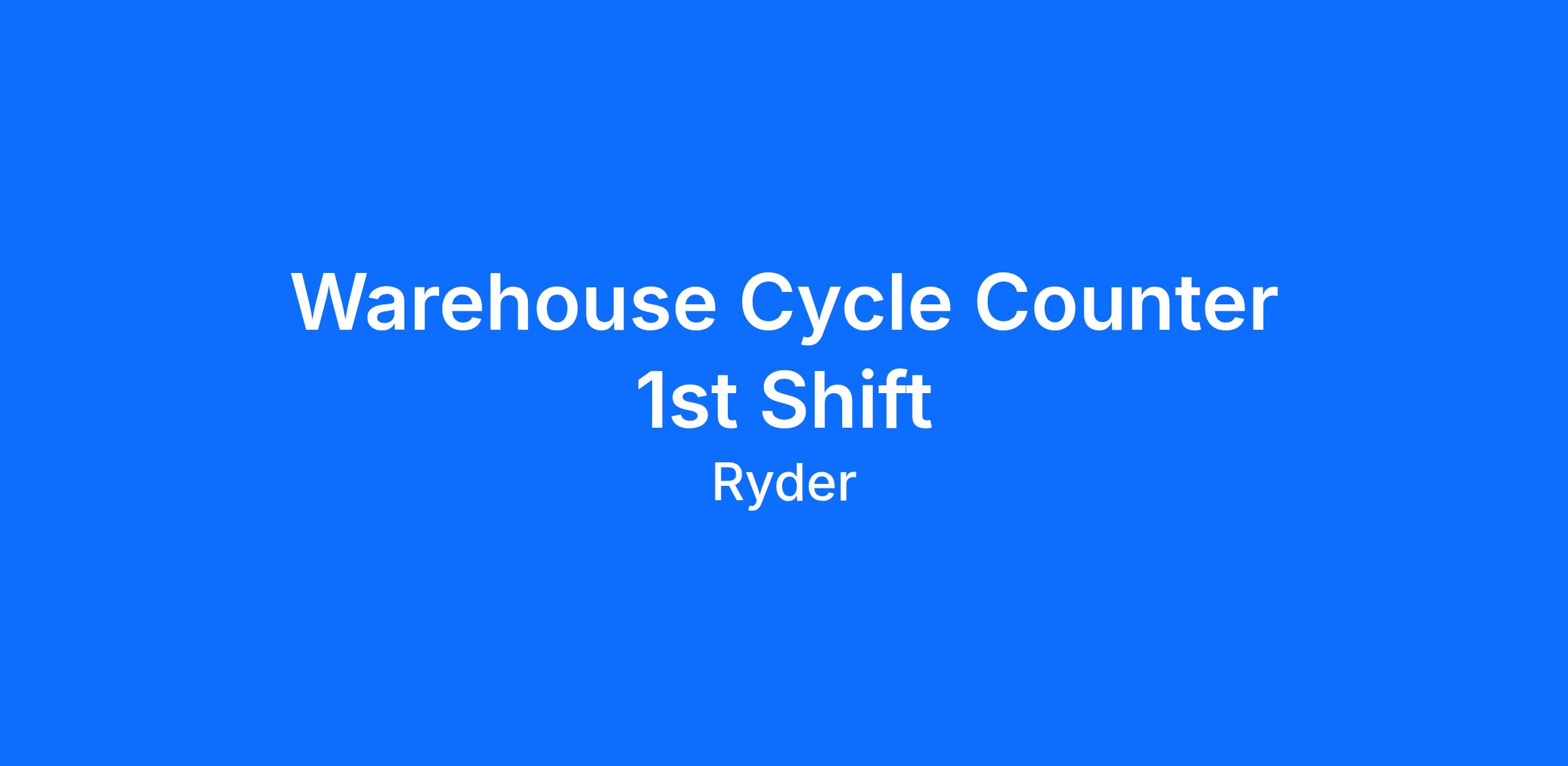 Ryder is immediately hiring a Permanent Full Time Cycle Counter in Woodridge, Illinois