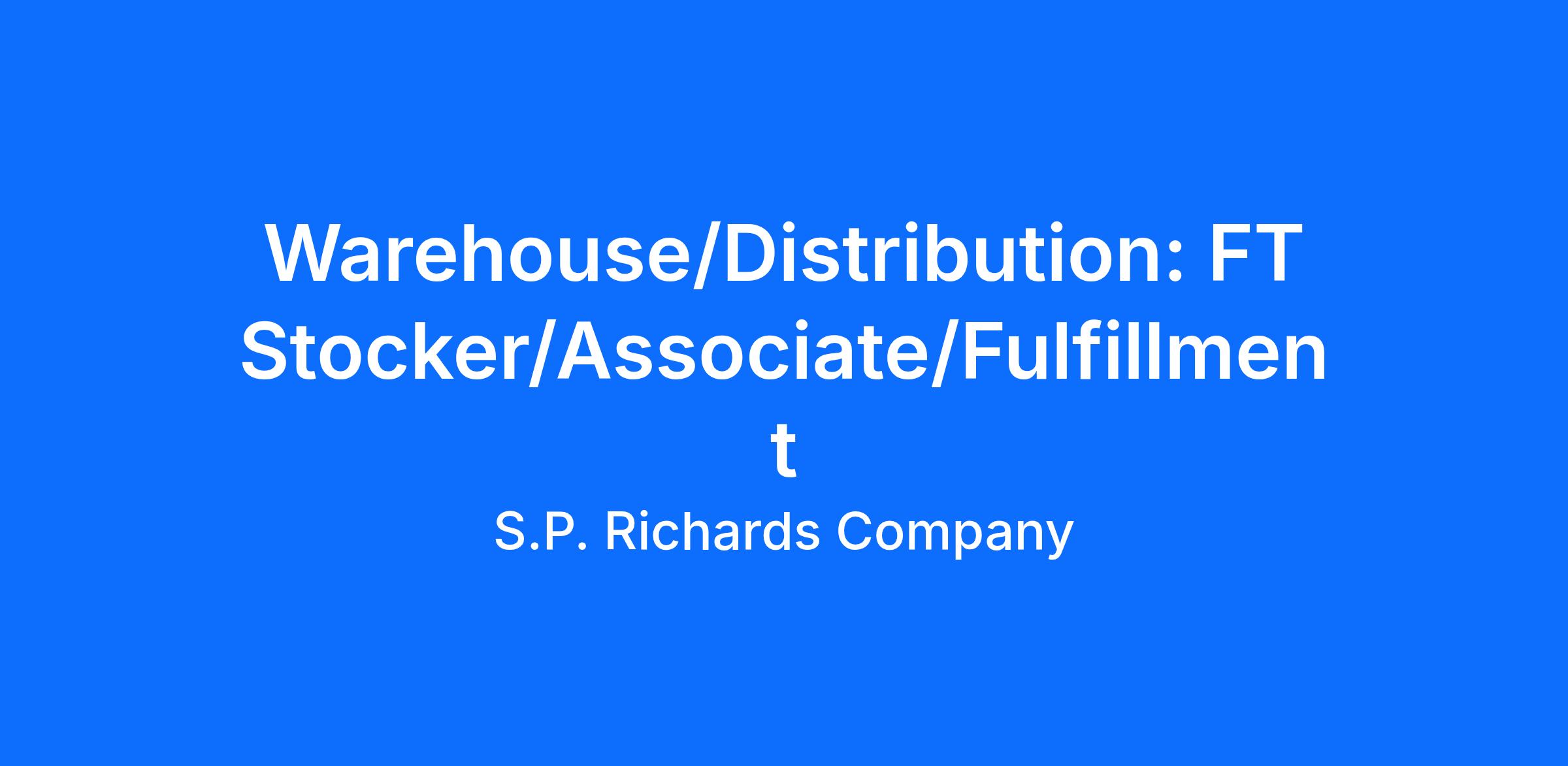 Warehouse/Distribution: FT Stocker/Associate/Fulfillment