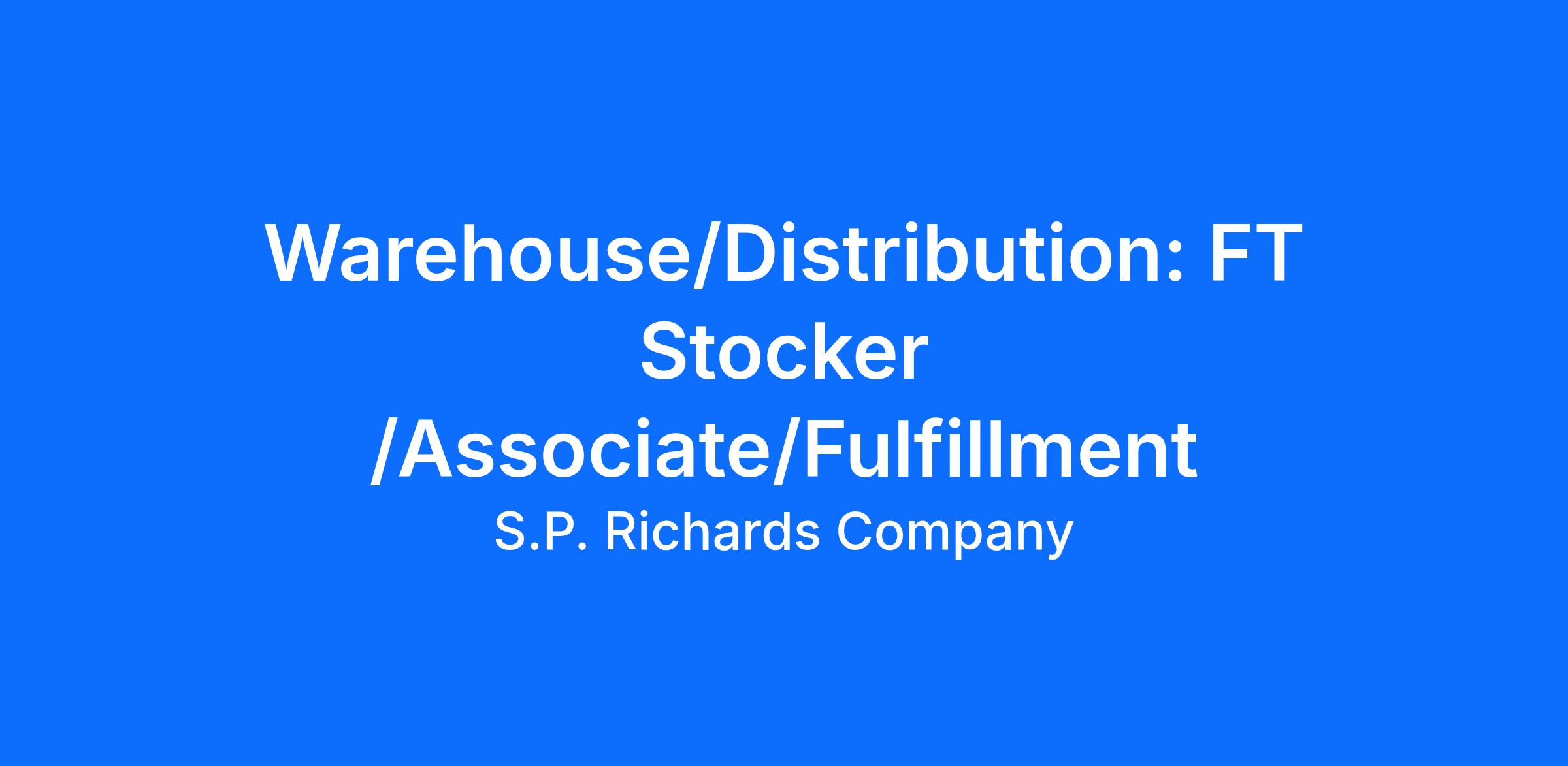 Warehouse/Distribution: FT Stocker/Associate/Fulfillment