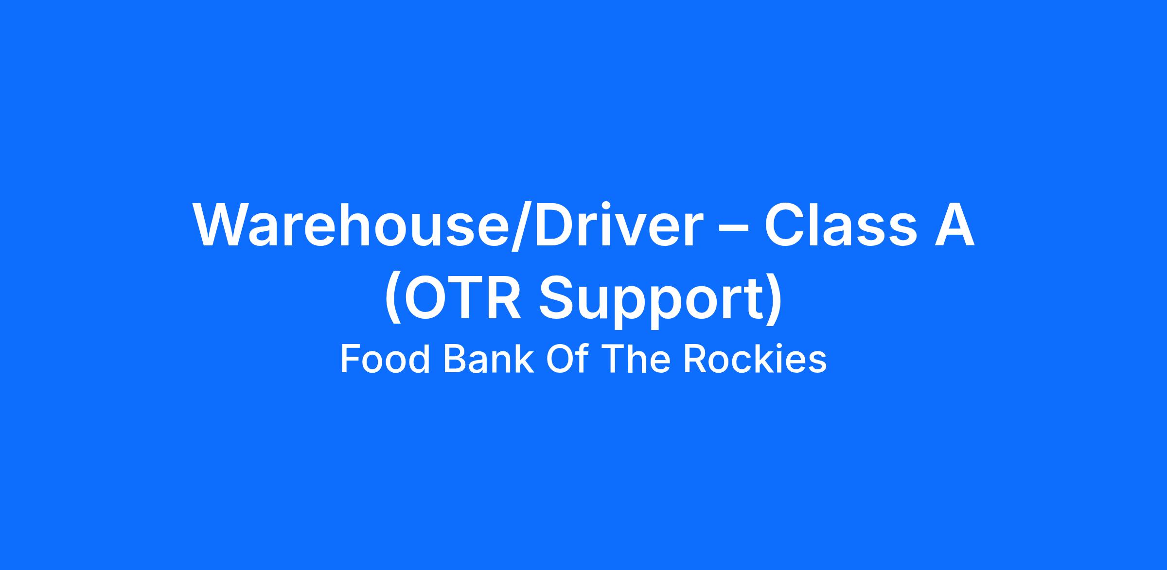 Position Title: Warehouse/Driver – Class A (OTR Support)