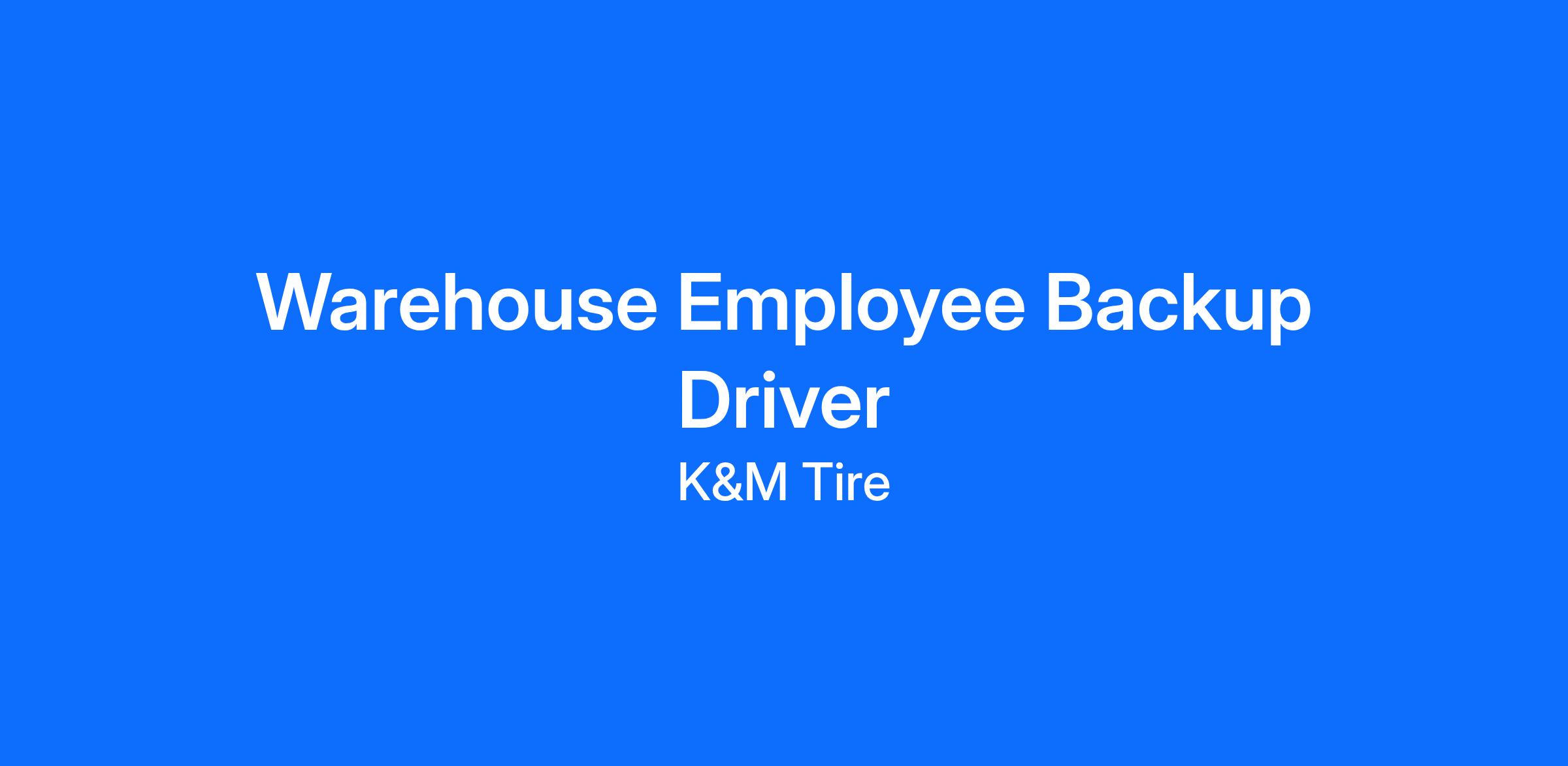 Job Summary: The WAREHOUSE EMPLOYEE BACKUP DRIVER Level I works under the direction of the Warehouse Manager, Assistant Manager, or Team Leader; responsible for unloading and/or loading trucks, as well as picking/pulling and/or putting away tires/products.