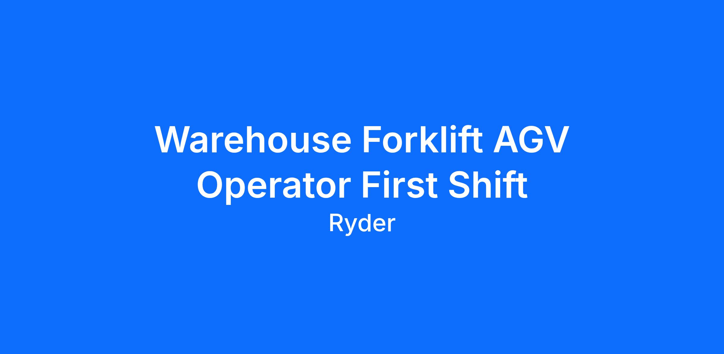 Ryder is immediately hiring a Permanent Full Time AGV Operator/Technician