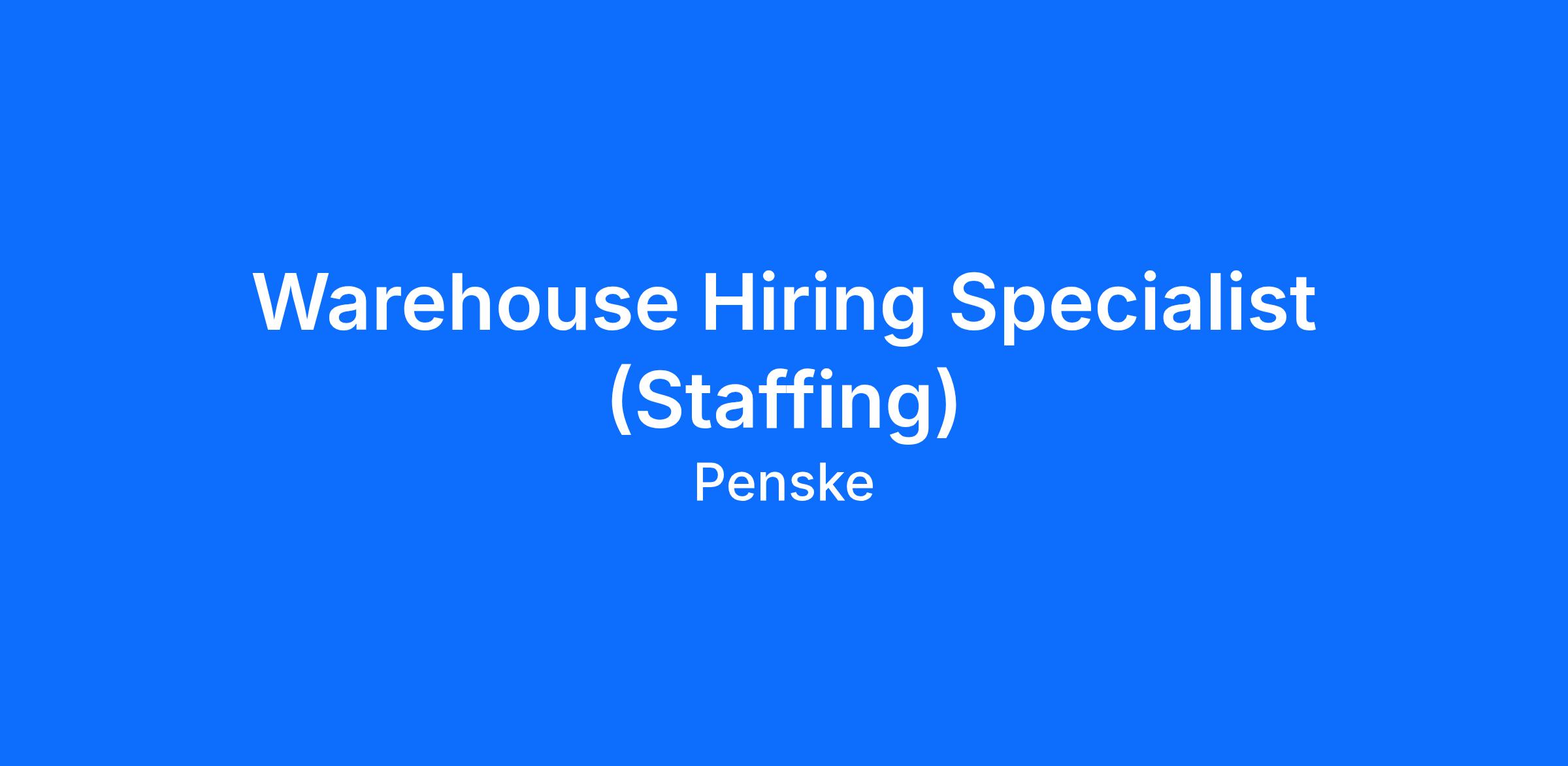 Why join Penske as a Warehouse Hiring Specialist, you ask? It’s simple. A Penske Warehouse Hiring Specialist is responsible for sourcing, interviewing, and making hiring decisions for hourly warehouse worker positions for Penske Logistics Warehouse Operations. You will be the "voice" of Penske - the person greeting our warehouse candidates via phone and sending them off with a smile. This exciting role will work at our corporate offices in Reading, PA and remotely support operations across the United States and Canada. You will work as a part of a team who are committed to ensuring a high-touch, personal approach with warehouse candidates in a call center environment. As such, you will have metrics to meet pertaining to call activity including outbound calls and call time.