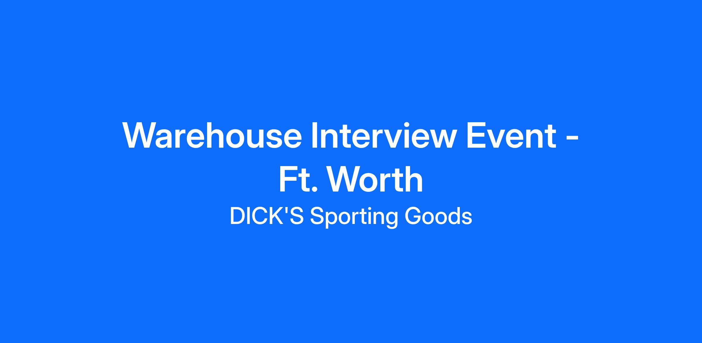 DICKS SPORTING GOODS is excited to open our BRAND NEW Distribution Center right here in Fort Worth! We are NOW HIRING for multiple roles. This is your chance to be part of a growing, high-performing team from day one—apply, interview, and take the next step in your career with us. Our hiring event begins on Tuesday January 20, 2026!