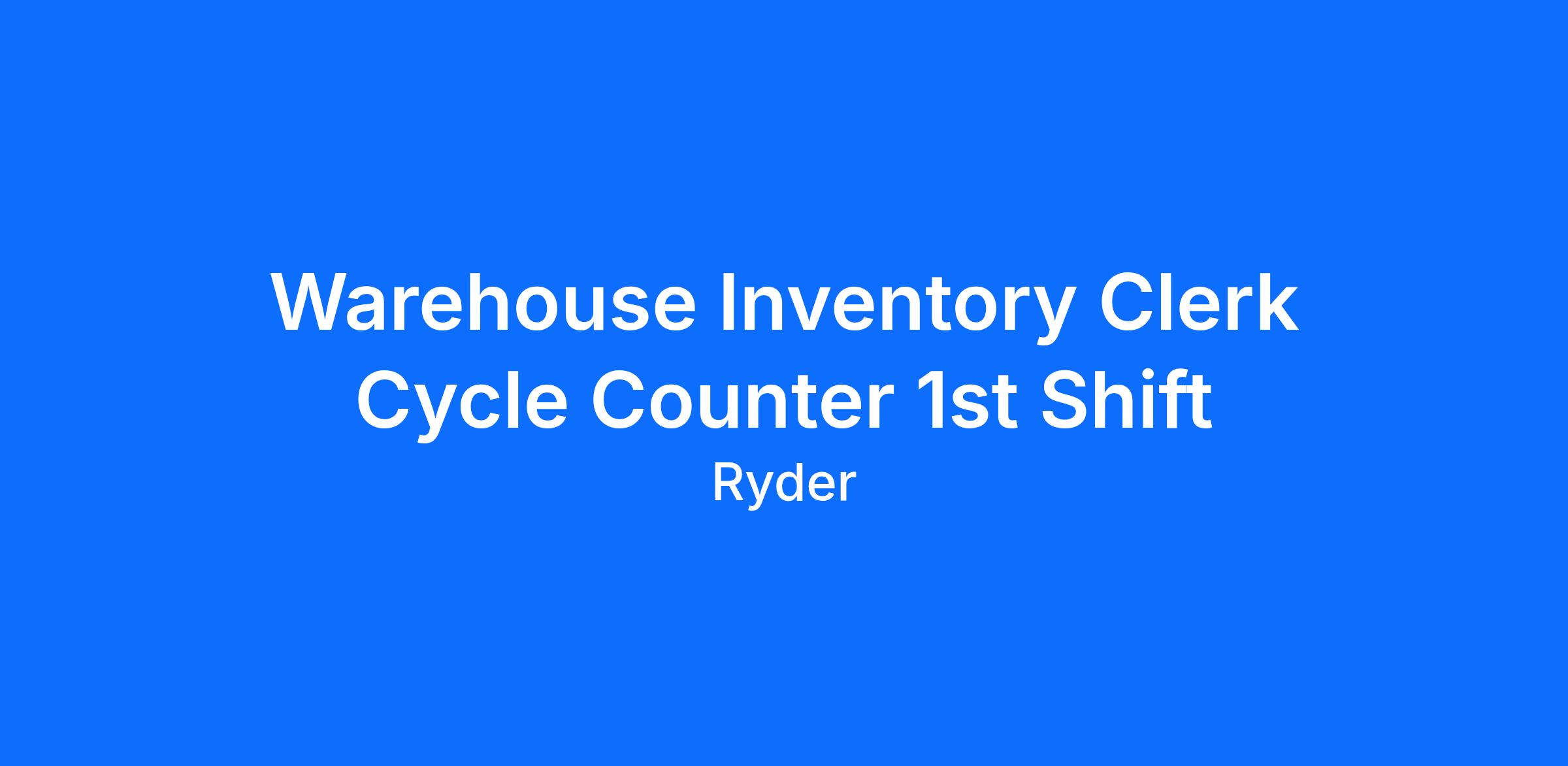 Ryder is immediately hiring Warehouse Inventory Clerks/Cycle Counters in Apopka, Florida