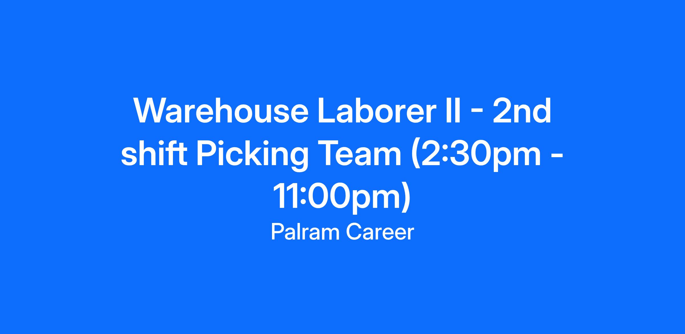 Warehouse Laborer II - 2nd shift Picking Team (2:30pm - 11:00pm)
