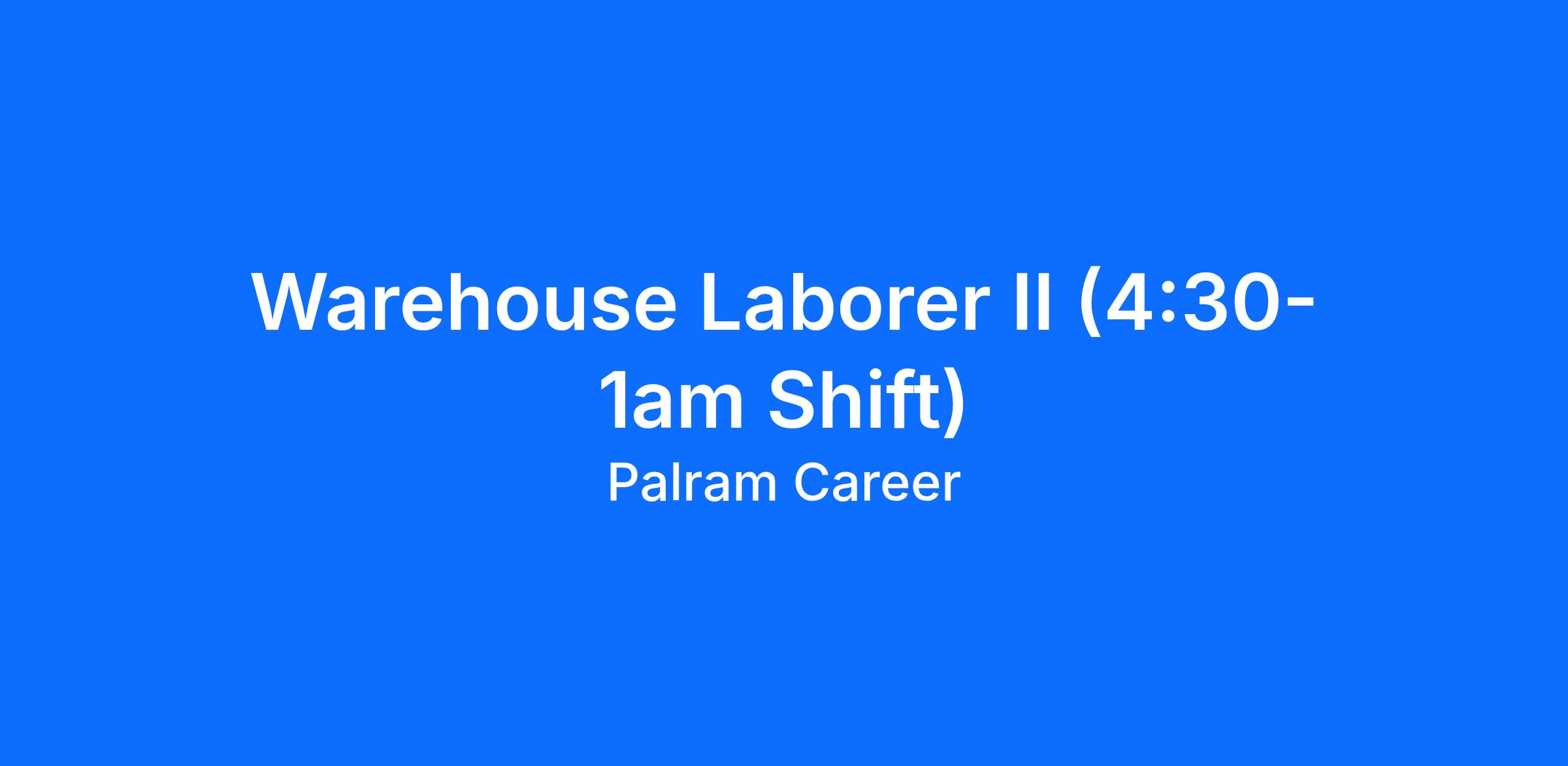 Warehouse Laborer II (4:30-1am Shift)