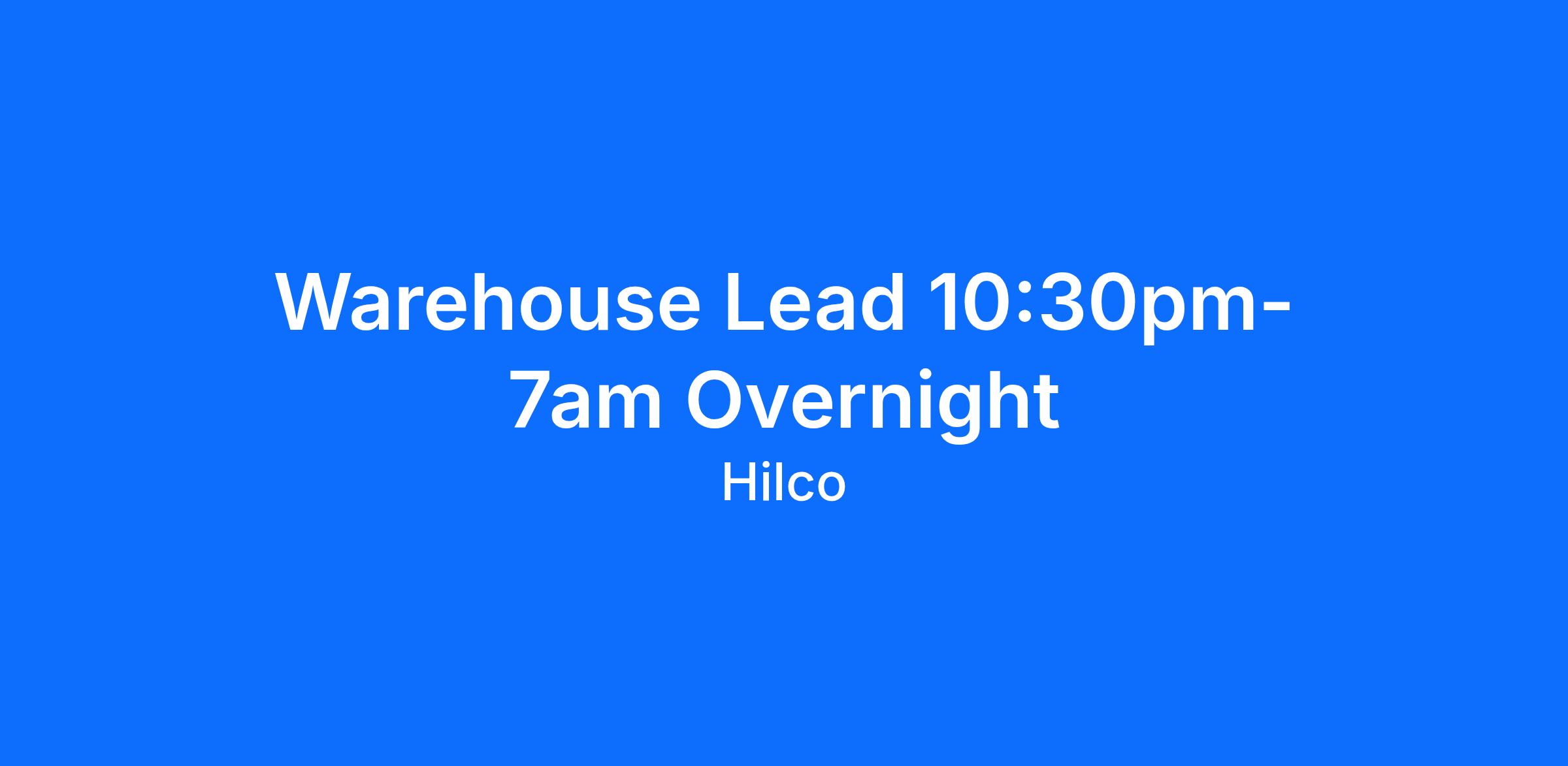 We are currently searching for a Warehouse Lead to join the team at our facility in Fairfield, OH! The Warehouse Lead is responsible for working in the facility with the Supervisor and team to ensure that specific departmental goals and metrics are met. Areas of focus for the Warehouse Lead includes Safety, Support, Quality Control, Material Handling, etc. The hours for this role are 10:30pm - 7:00am. Premium Shift differential offered.
