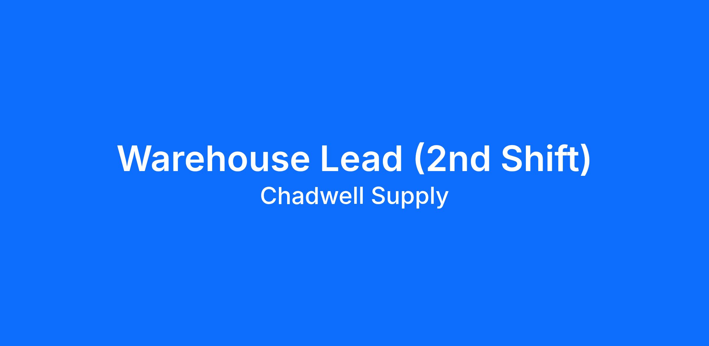 Chadwell Supply is a successful family-owned maintenance supply company with 30 Branches Nationwide. We are currently looking for an enthusiastic, energetic, and detail-minded individual to work as a Chadwell Supply Lead Warehouse Associate.