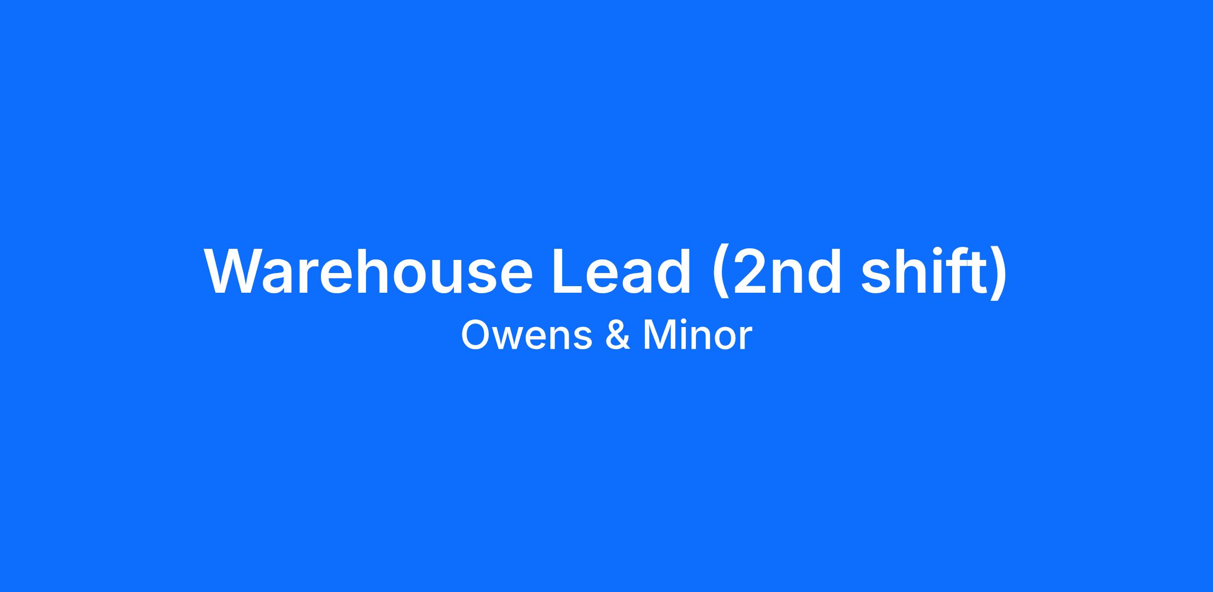 Owens & Minor is an Equal Opportunity Employer. All qualified applicants will receive consideration for employment without regard to race, color, national origin, sex, sexual orientation, genetic information, religion, disability, age, status as a veteran, or any other status prohibited by applicable national, federal, state or local law.