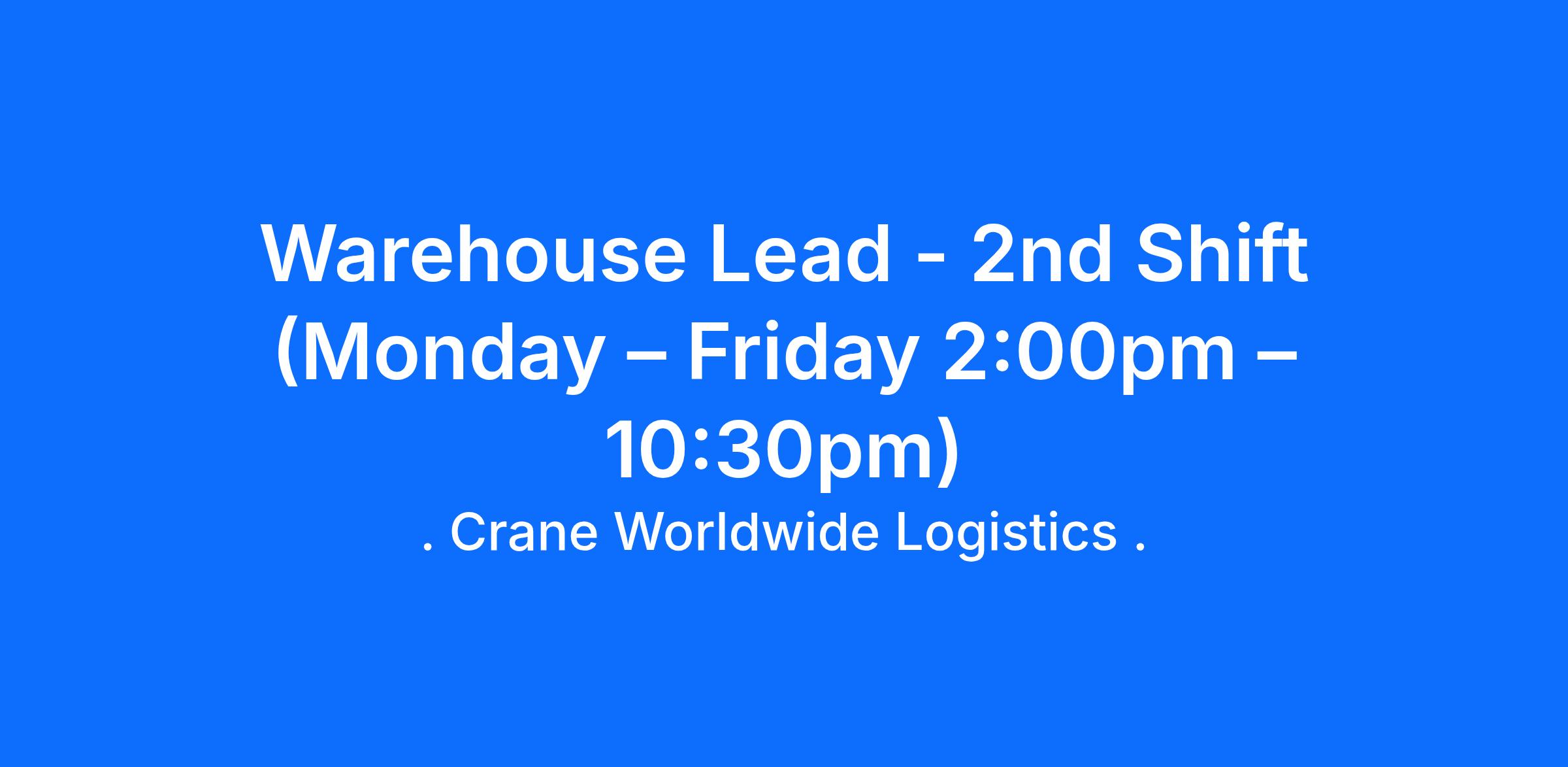 - 2 to 3 years of experience with warehouse work.