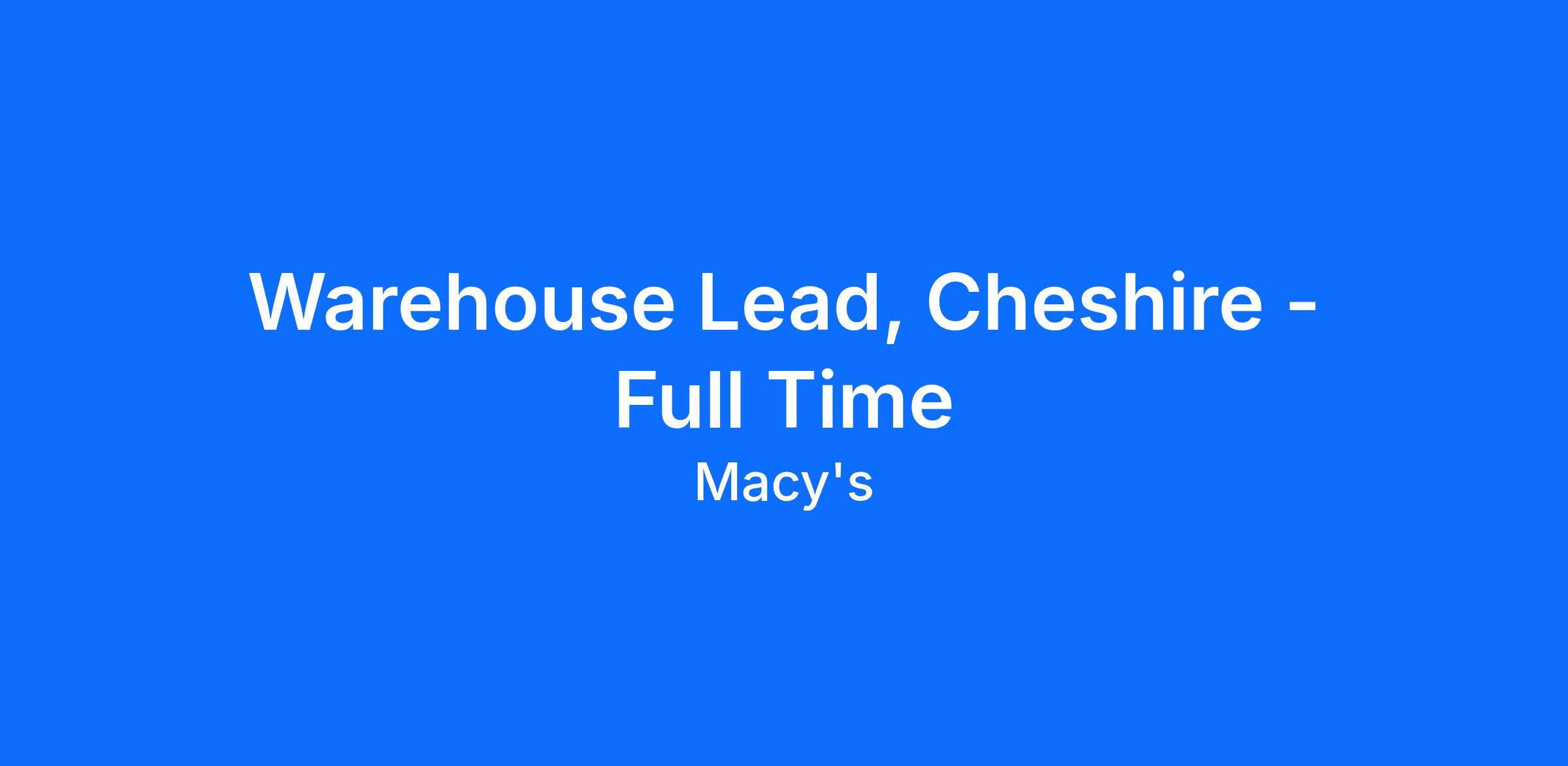 This job description is not all-inclusive. Macy's, Inc. reserves the right to amend this job description at any time. Macy's, Inc. is an Equal Opportunity Employer, committed to a diverse and inclusive work environment.