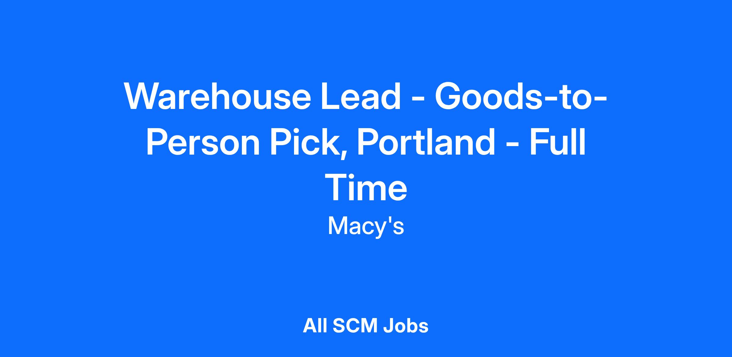 Warehouse Lead - Goods-to-Person Pick, Portland - Full Time