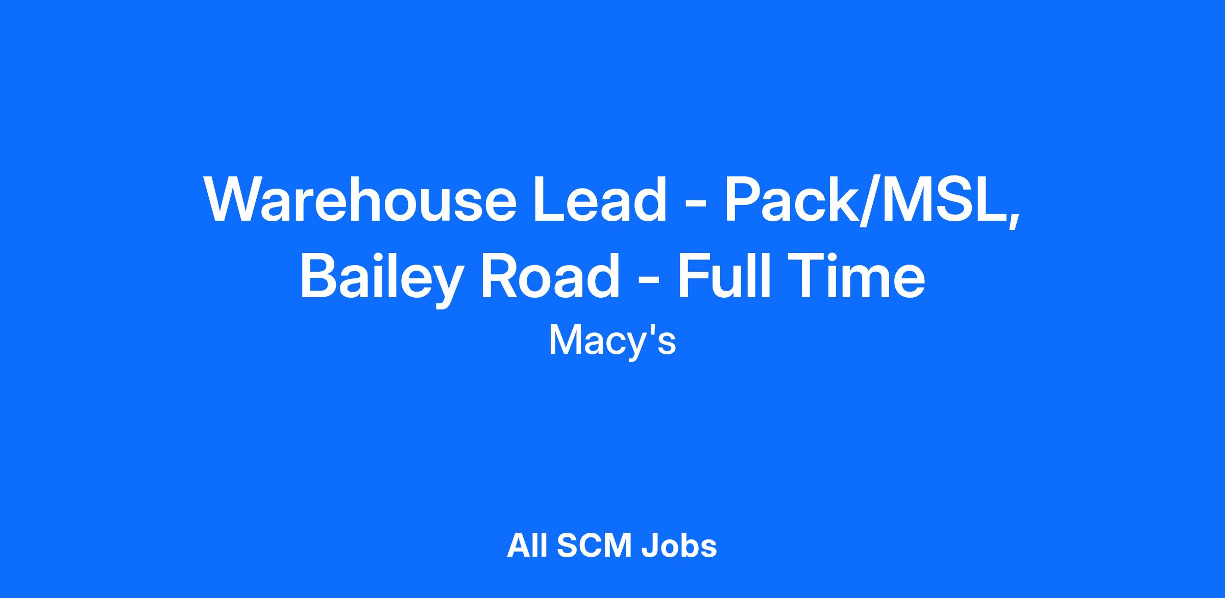 This job description is not all-inclusive. Macy's, Inc. reserves the right to amend this job description at any time. Macy's, Inc. is an Equal Opportunity Employer, committed to a diverse and inclusive work environment.