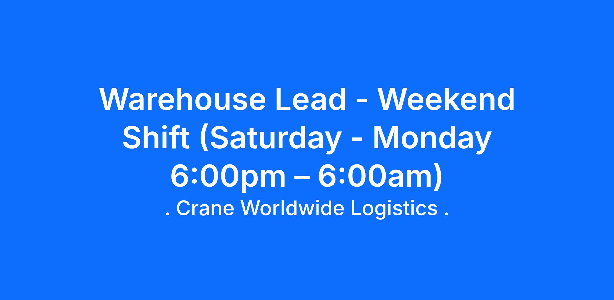 Warehouse Lead - Weekend Shift (Saturday - Monday 6:00pm – 6:00am)