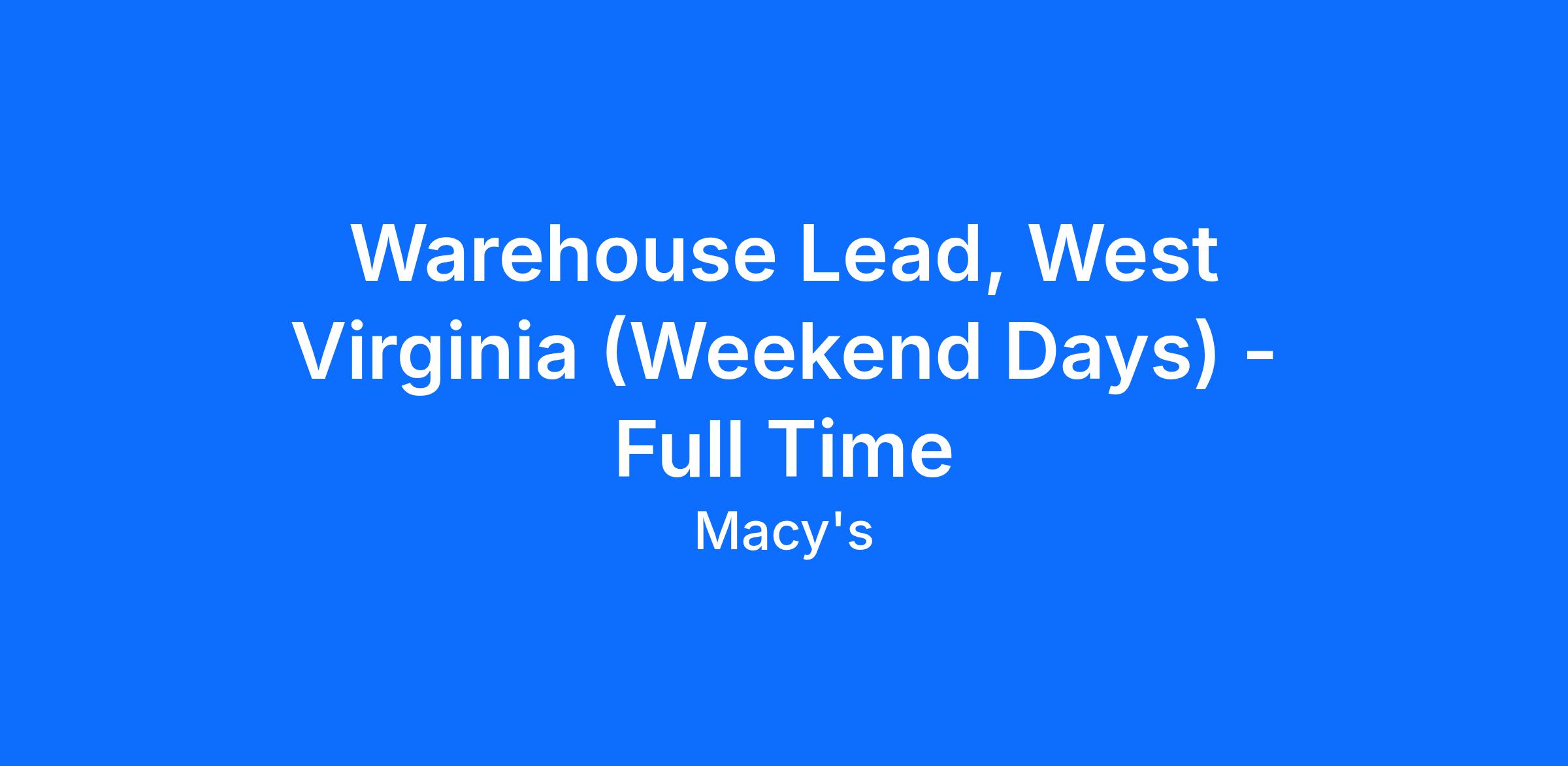 This job description is not all-inclusive. Macy's, Inc. reserves the right to amend this job description at any time. Macy's, Inc. is an Equal Opportunity Employer, committed to a diverse and inclusive work environment.