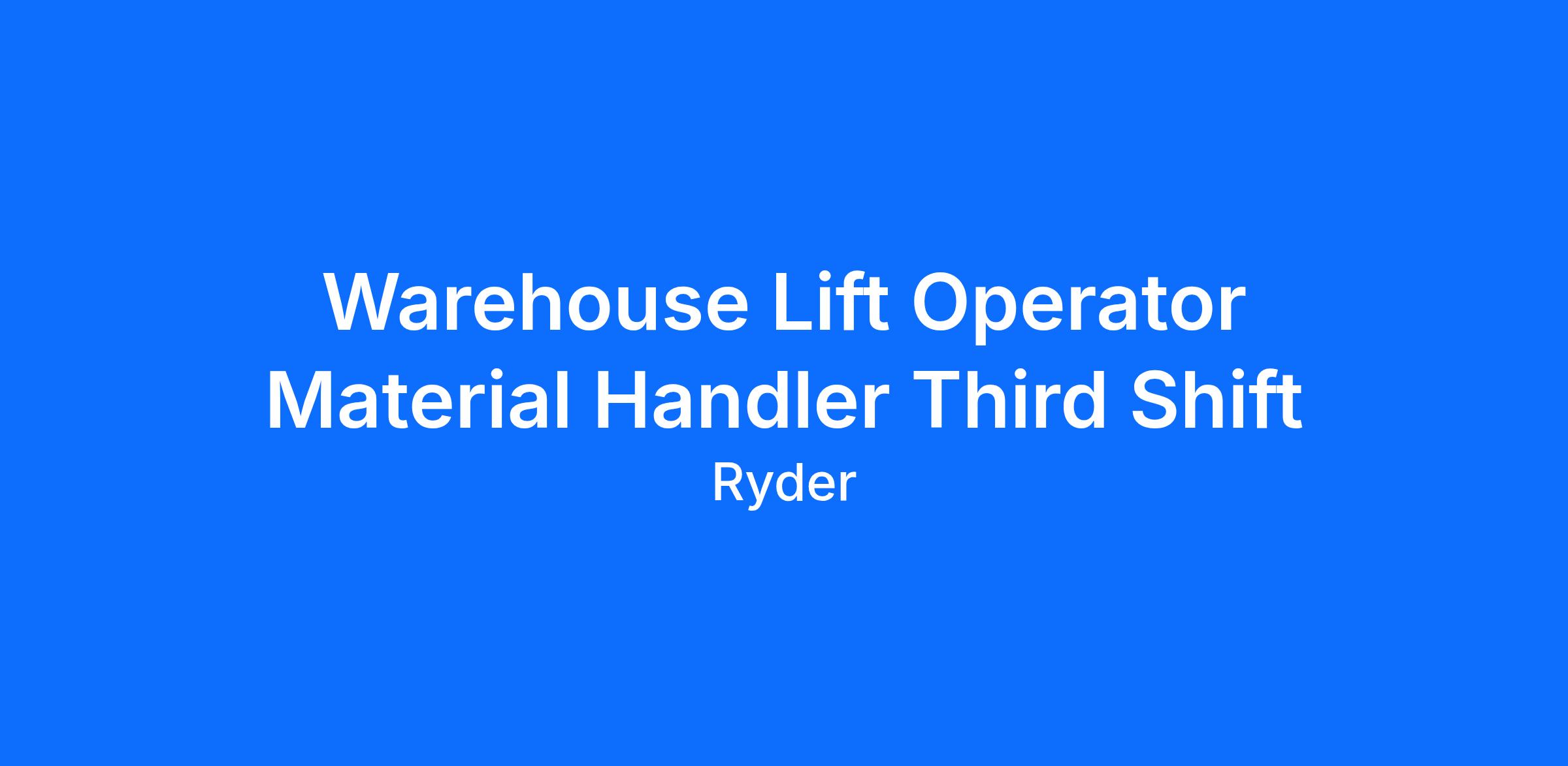 Ryder is immediately hiring for Permanent Full Time Material Handler in Hagerstown, Maryland