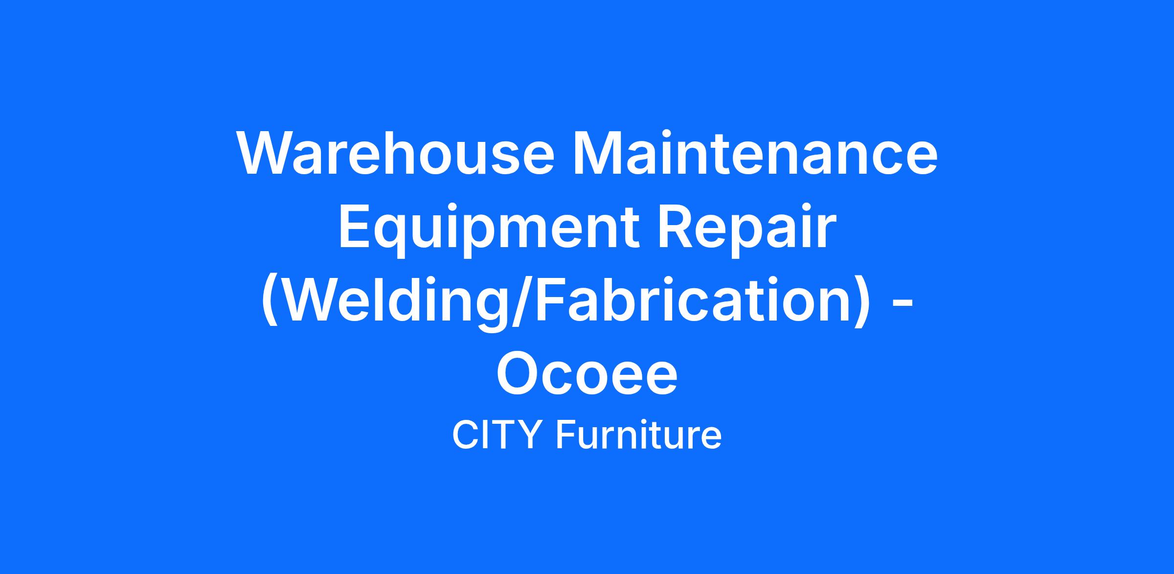 As a Warehouse Maintenance Equipment Repair Associate, the primary function of this position is to safely fix and maintain mechanical equipment, building systems, and material handling equipment throughout the facility. The Maintenance Equipment Repair Associate is also responsible for repairing warehouse equipment such as stock pickers, tuggers, rails, and rack along with warehouse inspections. Your contributions will ensure the success of the Operations Department at CITY Furniture.