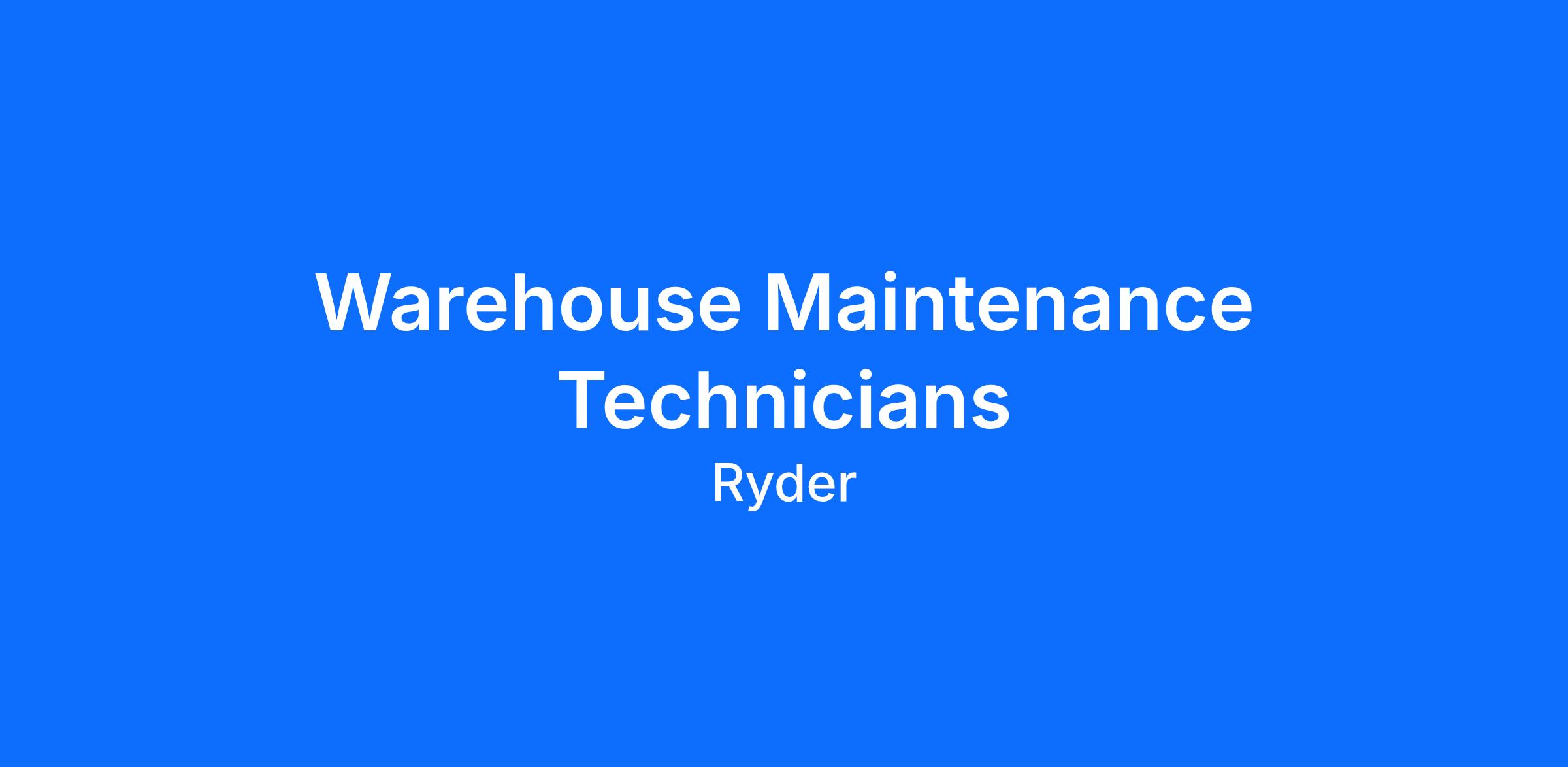 Ryder is hiring a Permanent Full Time Warehouse Maintenance Technicians in Tracy, CA