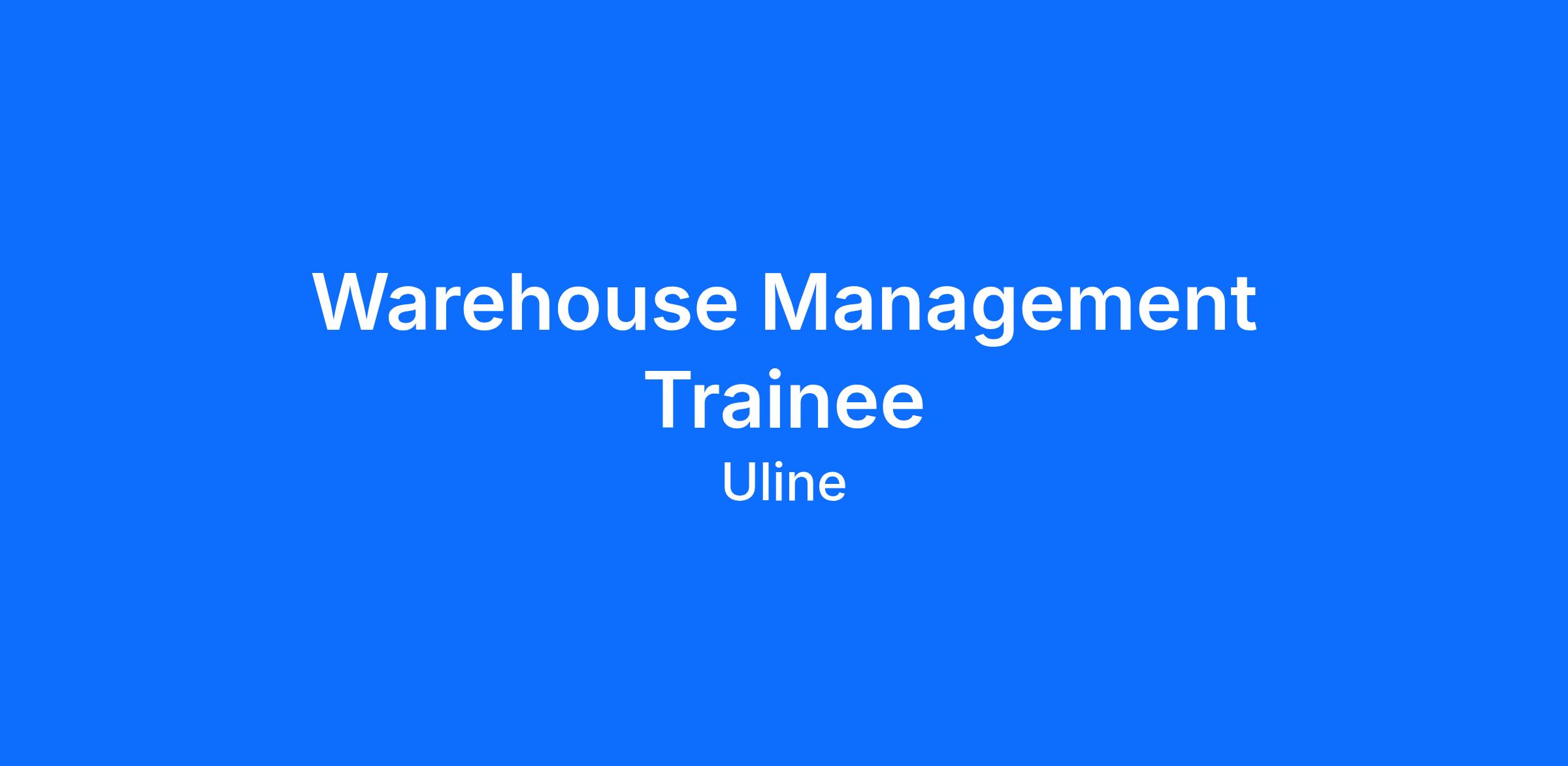 Are you an emerging warehousing leader and champion for collaboration, training and teamwork? Then you belong at Uline! As a Warehouse Management Trainee, you’ll learn the ins and outs of warehouse operations and leadership through hands-on experience. It’s an exciting time to join our growing company - with new opportunities and job stability you can count on!