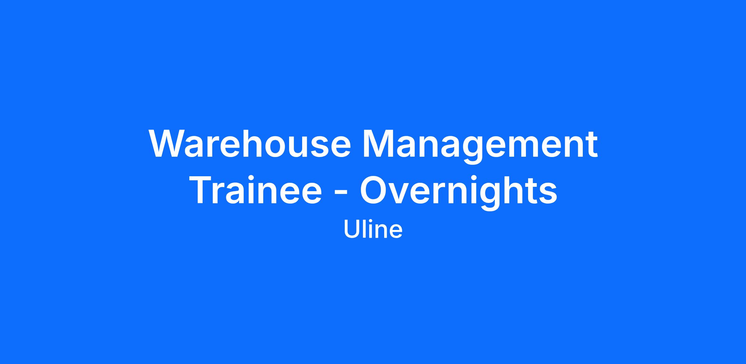 Are you an emerging warehousing leader and champion for collaboration, training and teamwork? Then you belong at Uline! As an Overnight Warehouse Management Trainee, you’ll learn the ins and outs of warehouse operations and leadership through hands-on experience. It’s an exciting time to join our growing company - with new opportunities and job stability you can count on!