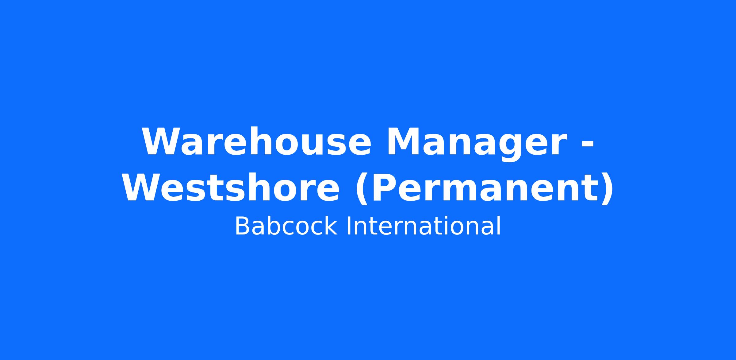 Warehouse Manager (Permanent)