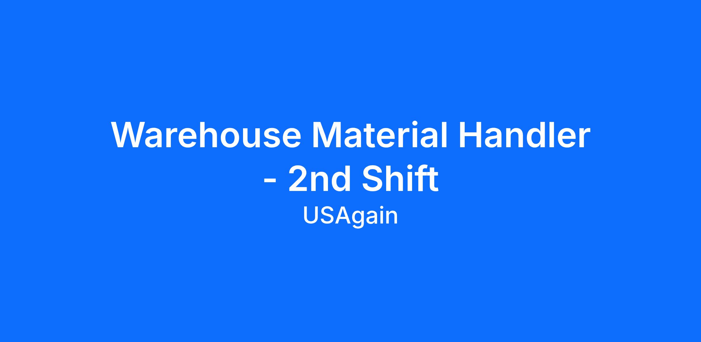 USAgain currently has an immediate opening for 2nd Shift Warehouse Material Handler in Hazelwood, MO. In this position, you will be handling, processing, and preparing all raw materials received into finished materials for warehouse inventory storage, sale, and shipment to the customer.