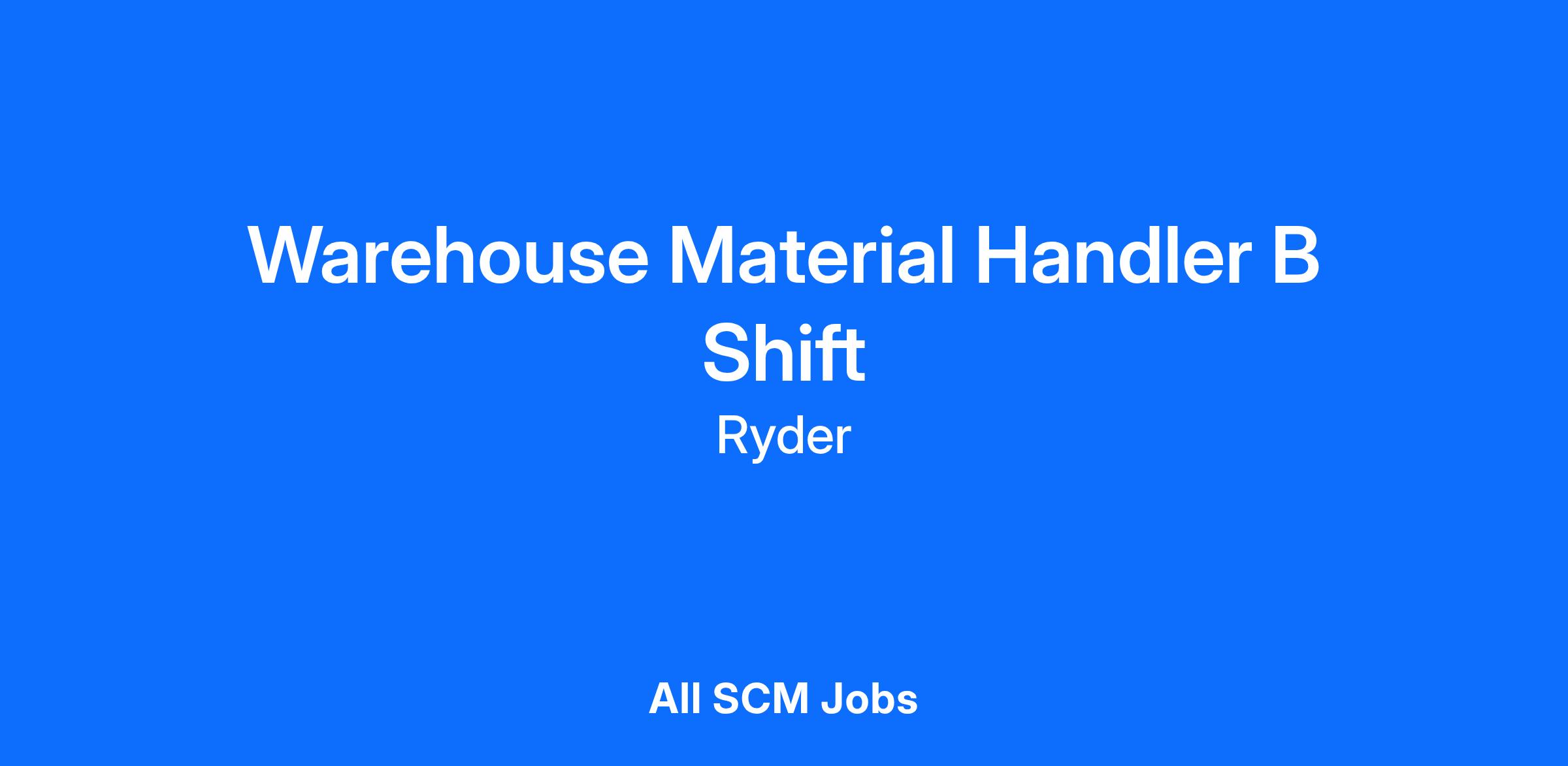 Ryder is immediately hiring a Permanent Full Time Material Handler in Minster, Ohio