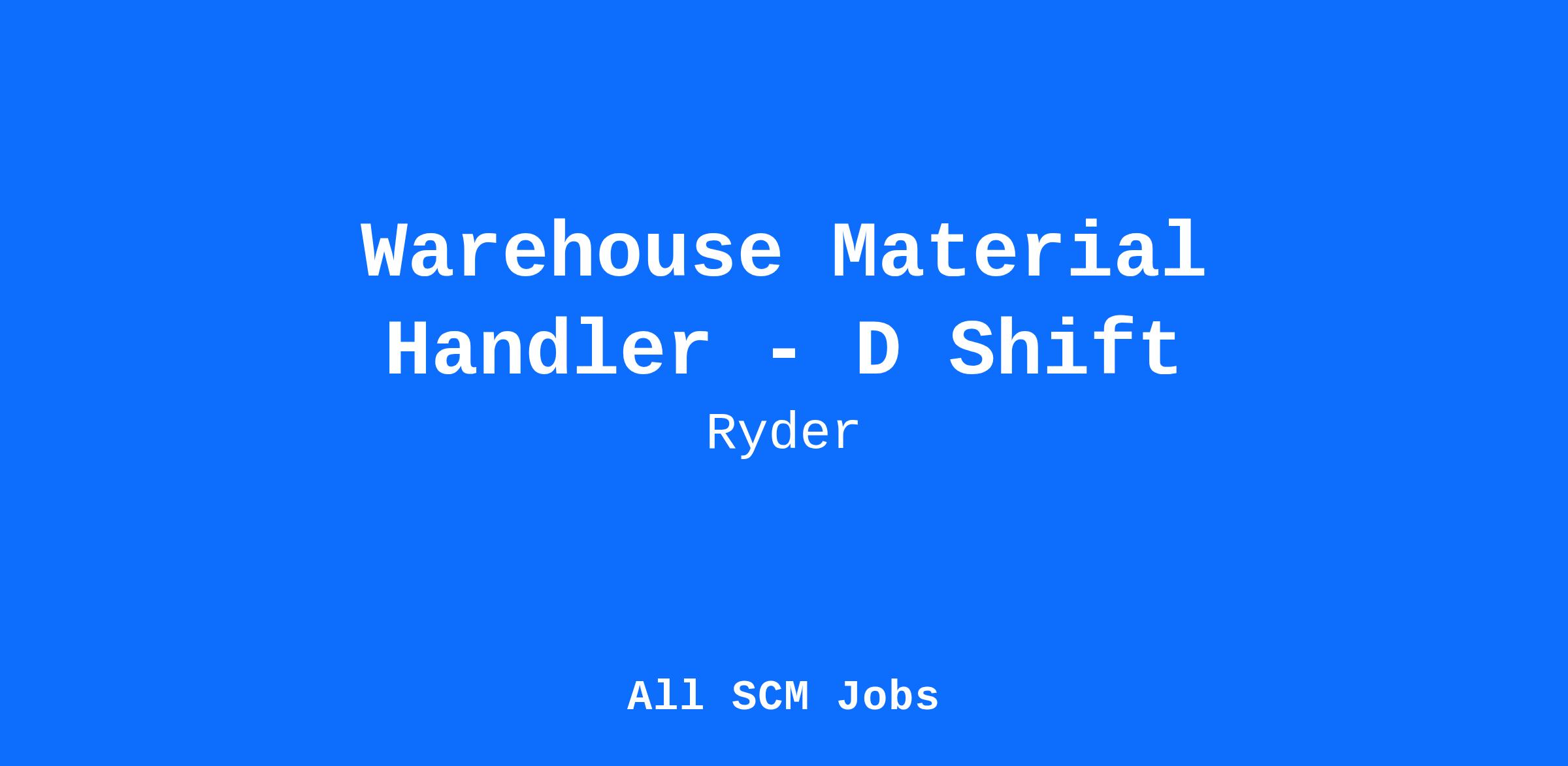 Ryder is immediately hiring a Permanent Full Time Material Handler in Minster, Ohio