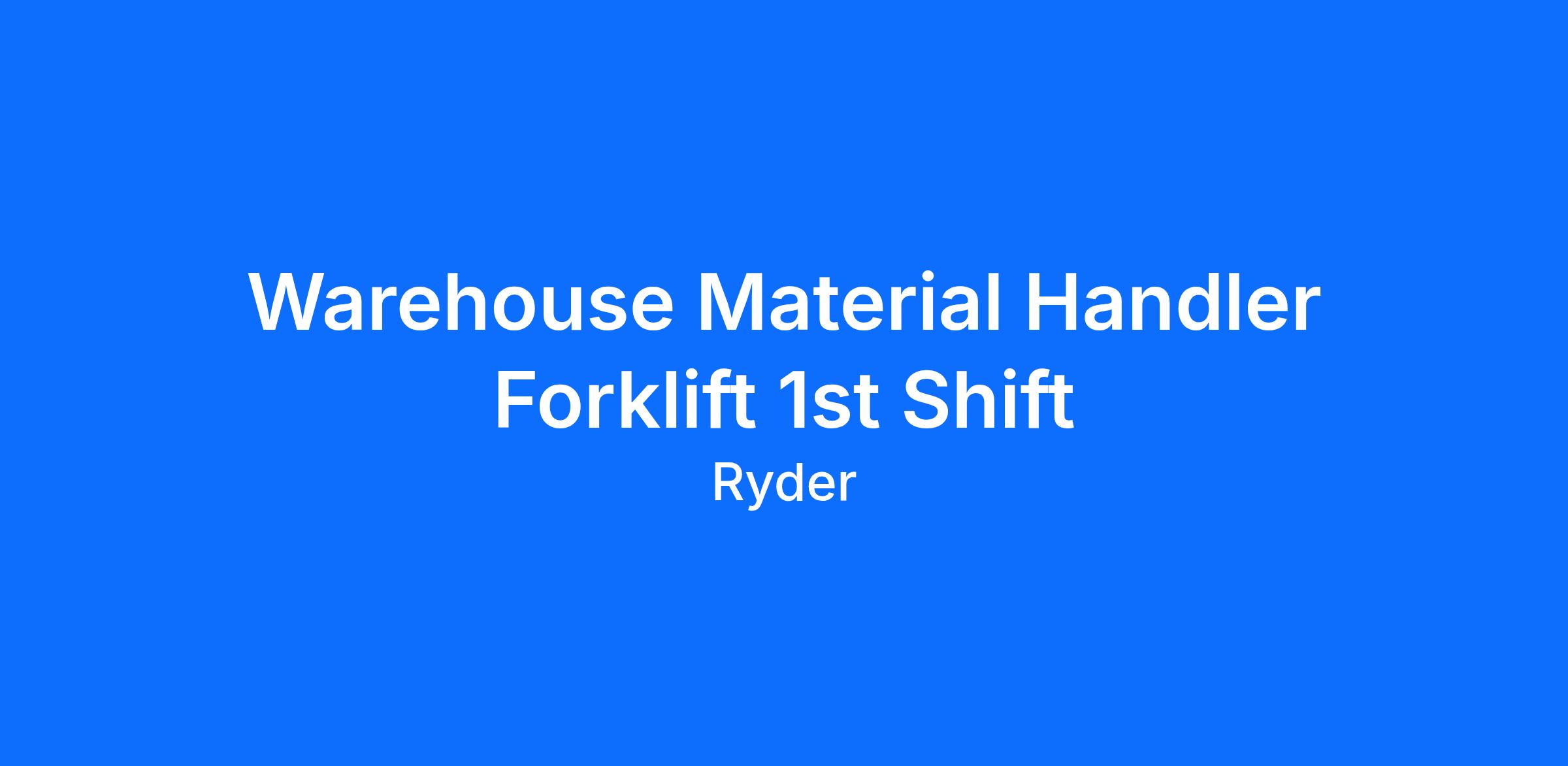 Ryder is immediately hiring a Permanent Full Time Material Handlers in Chambersburg, Pennsylvania