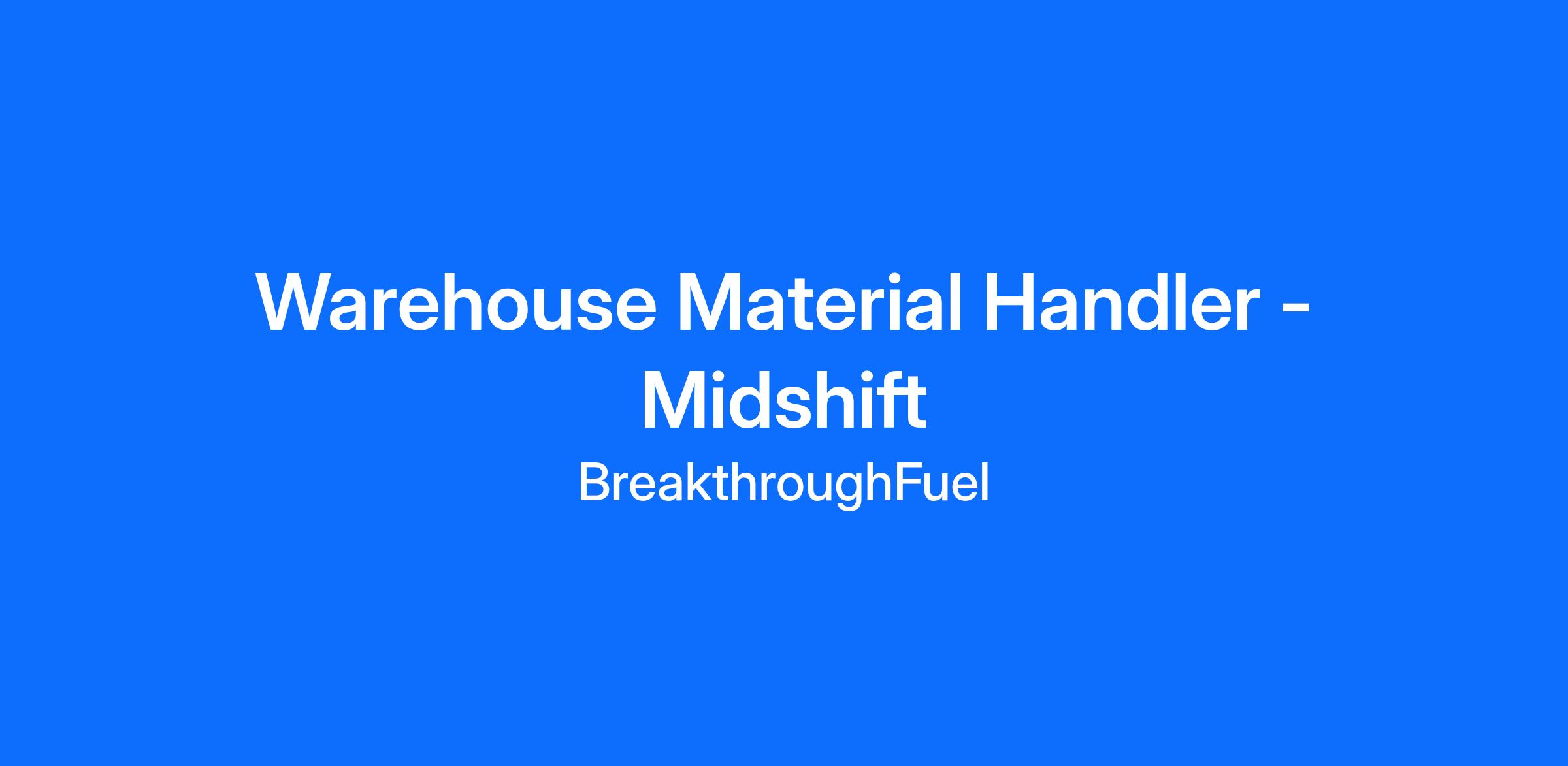 Warehouse Material Handler - Midshift