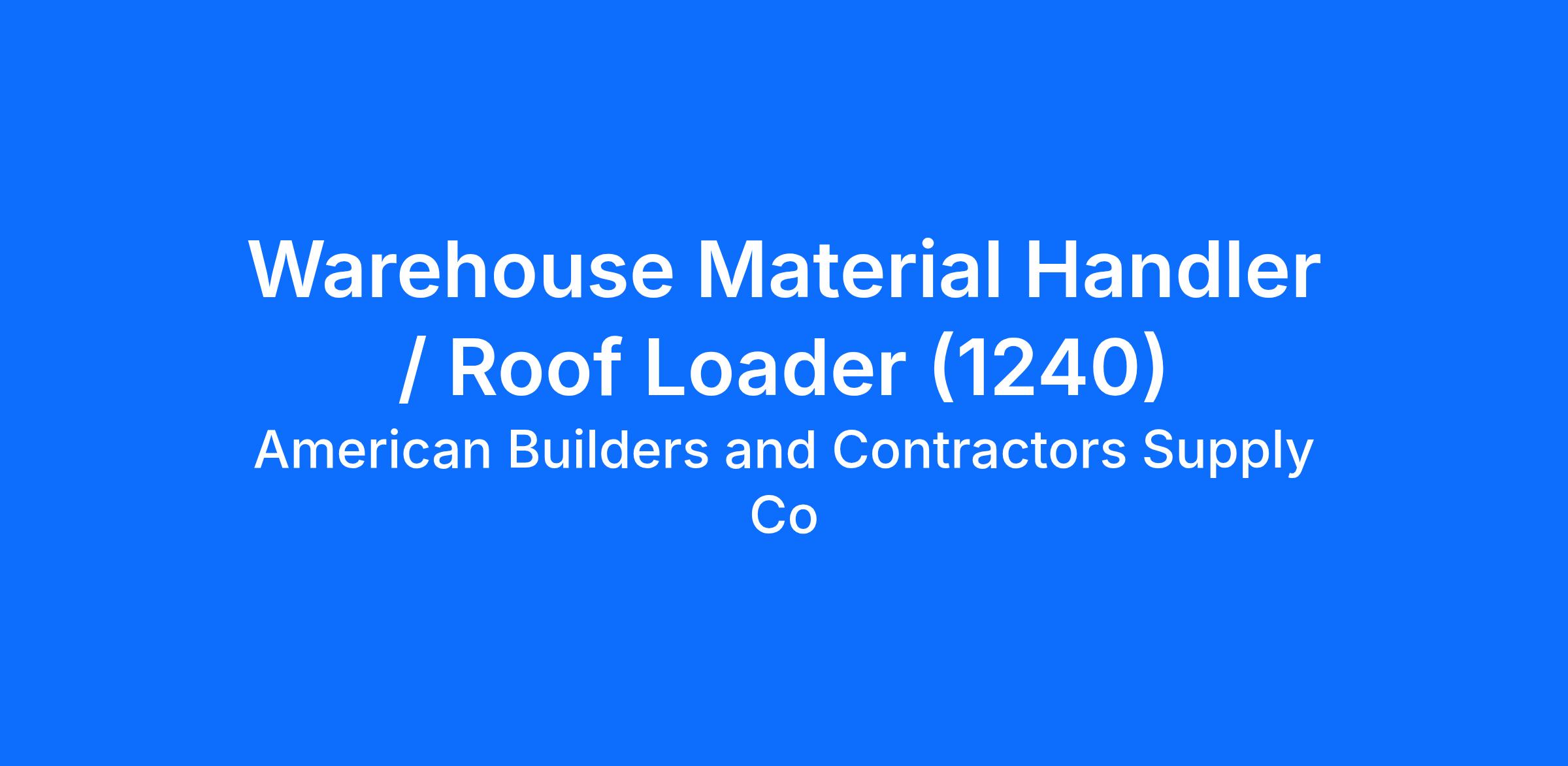 ABC Supply is the nation’s largest wholesale distributor of exterior and interior building materials. Warehouse Material Handler/Roof Loaders at ABC assist in the safe and accurate delivery of materials from the warehouse to each job site location. They unload orders according to customer specifications with the help of various delivery equipment, including truck-mounted forklifts. Delivery Material Handlers specialize in ground and/or rooftop deliveries. For rooftop deliveries, you will physically work on rooftops to complete the job.