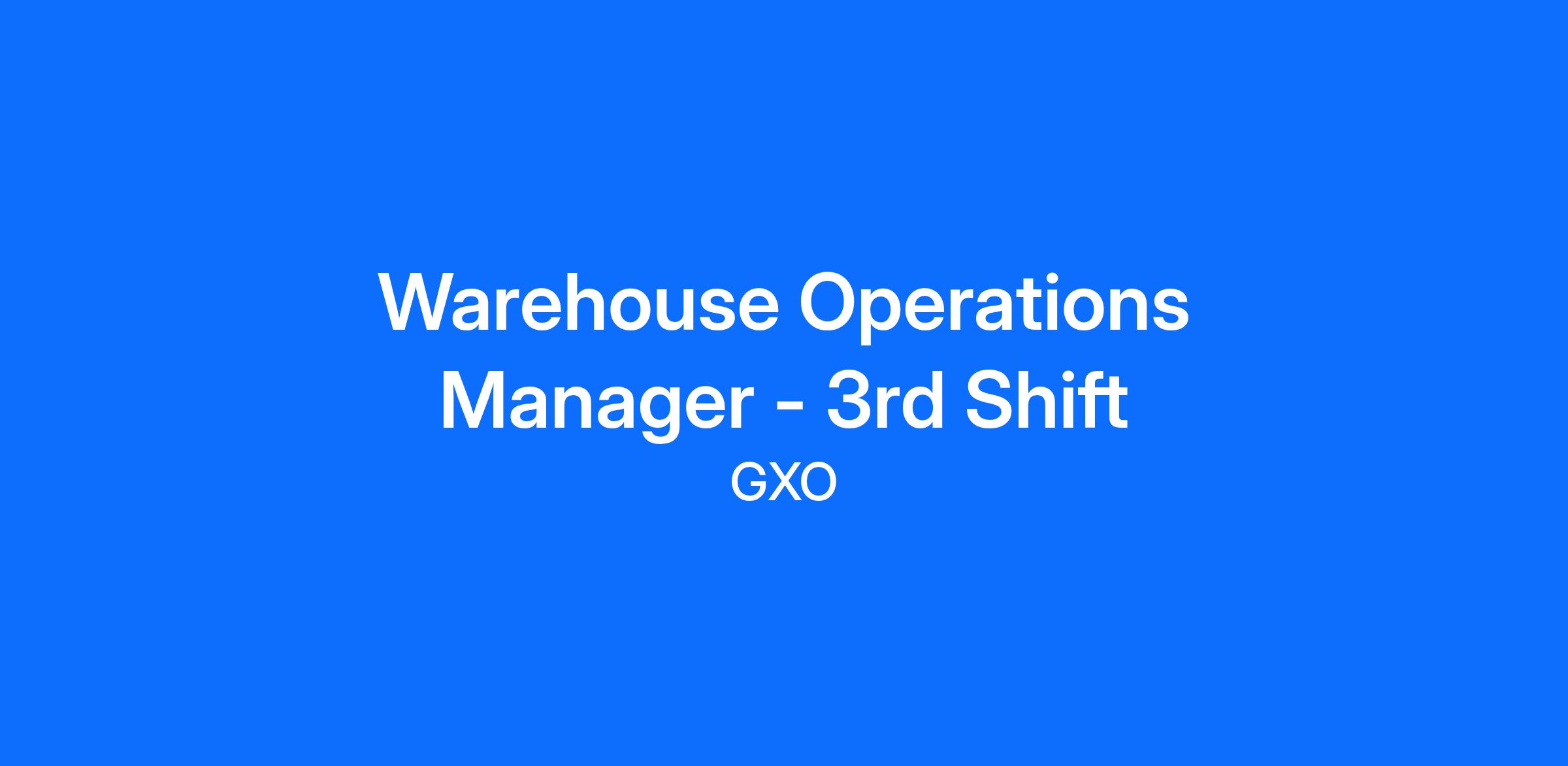 As the Warehouse Operations Manager you will oversee several important areas that are critical to keeping our operations running smoothly. We’ll count on your skills and years of experience to be a champion of our values, ensuring an engaged workforce, loyal customers, efficient operations and a bright future for yourself and GXO.