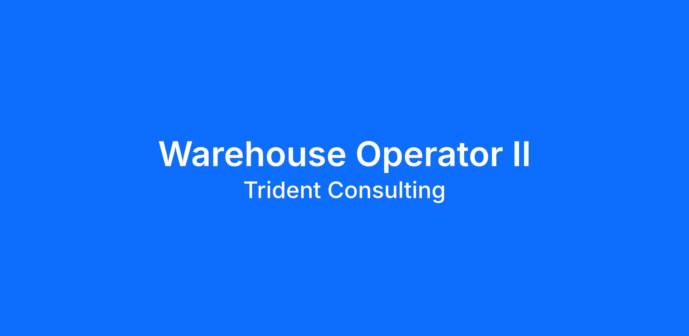 Trident Consulting is currently seeking a Warehouse Operator II for one of our industry leading clients.